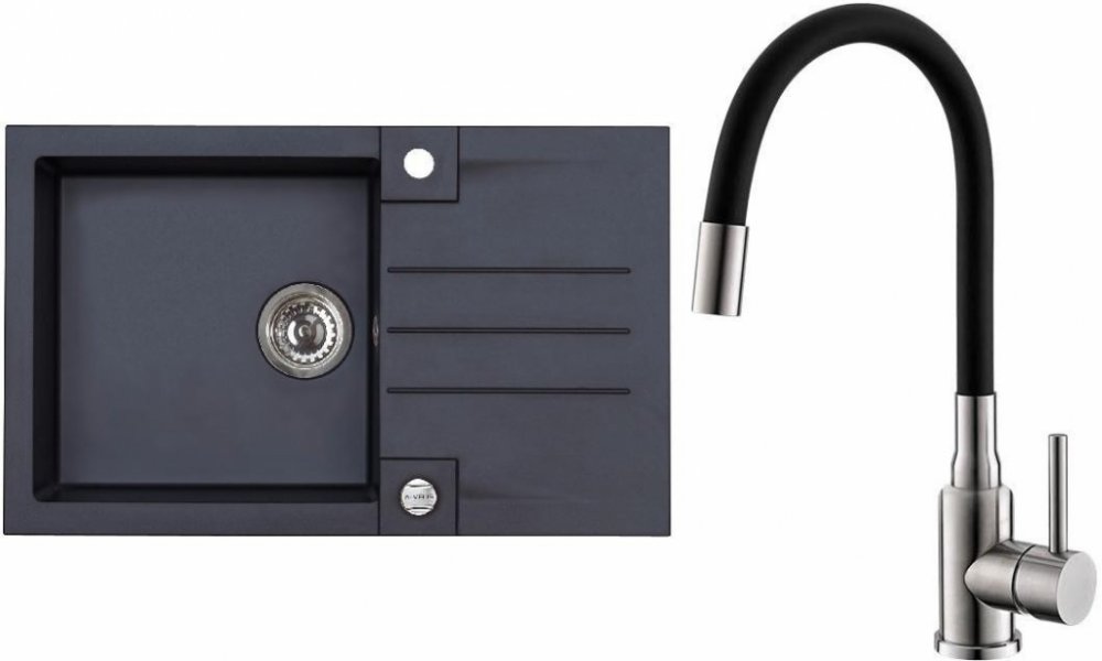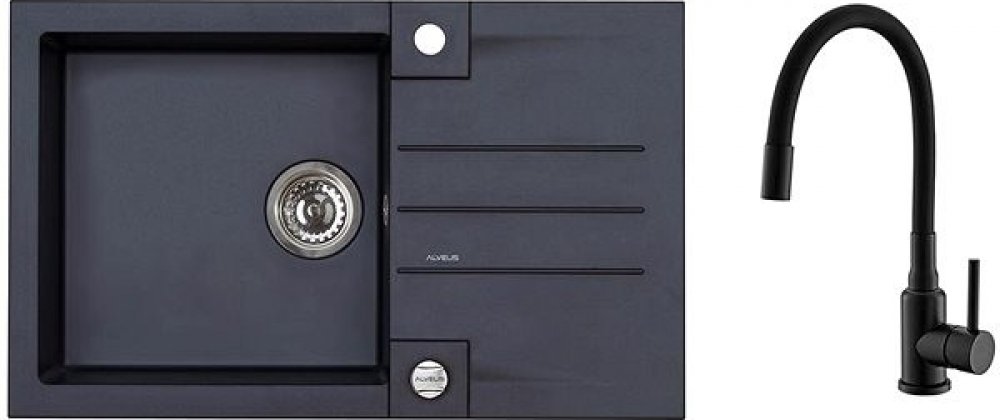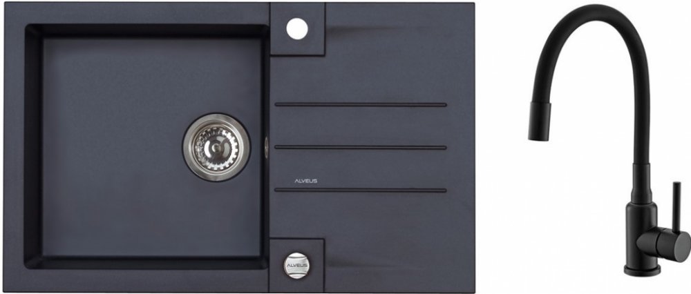 Granitový dřez Alveus ROCK 130 černá Jeden z nejoblíbenějších granitových dřezů dle nákupního rádce Heureka. Granitový dřez s odkapem Alveus Rock 130 v barevné variantě Černá je vyroben z přírodního granitu, který obsahuje 80% drceného kameniva s příměsí barviv a pojiv. Díky tomu odolává teplotám až 280 C a je velmi odolný proti vrypu a mechanickému poškrábání.