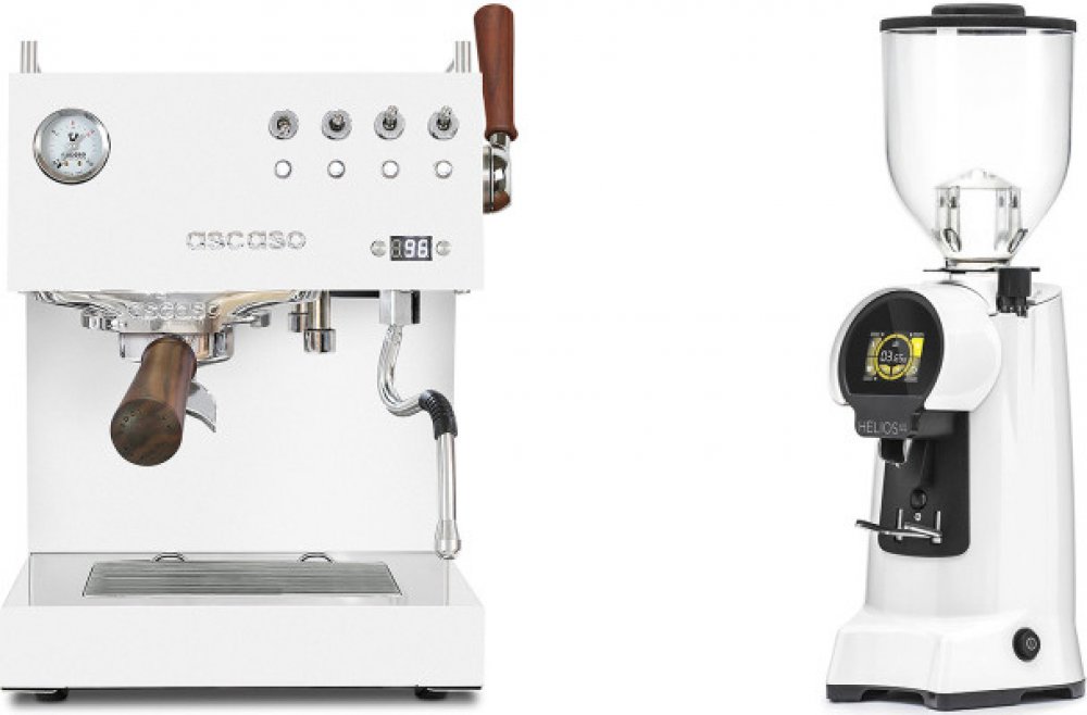 Exkluzivně vám nabízíme cenově zvýhodněný set špičkového espresso kávovaru Ascaso Steel DUO PID PLUS, který disponuje dvěma termobloky, PID regulací, výkonnou tryskou na páru ovládanou pomocí rychloventilu a dalším profesionálním vybavením, a vysokorychlostního mlýnku Helios 65 od renomované značky Eureka. Díky skvělému výkonu a špičkovému vybavení obstojí mlýnek i v náročných podmínkách velkých kaváren a restaurací. Baristé ocení jeho jednoduché ovládání. Na velkém dotykovém displeji lze nastavit automatické dávkování až pro tři porce. Samozřejmostí je velký násypník na kávová zrna s kapacitou 1,2 kg.Podrobné informace naleznete v detailech jednotlivých produktů:Ascaso Steel DUO PID PLUS, White&WoodEureka Helios 65, grey