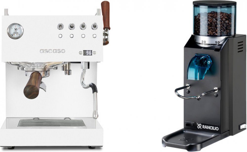 Exkluzivně vám nabízíme cenově zvýhodněný set špičkového espresso kávovaru Ascaso Steel DUO PID PLUS, který disponuje dvěma termobloky, PID regulací, výkonnou tryskou na páru ovládanou pomocí rychloventilu a dalším profesionálním vybavením, a robustního mlýnku Rancilio Rocky Doserless. Značka Rancilio těží ze svých dlouholetých zkušeností, které získala v oblasti výroby profesionálního baristického vybavení. Každý produkt je výsledkem bohatých znalostí a vysoké odbornosti.Podrobné informace naleznete v detailech jednotlivých produktů:Ascaso Steel DUO PID PLUS, White&WoodRancilio Rocky Doserless