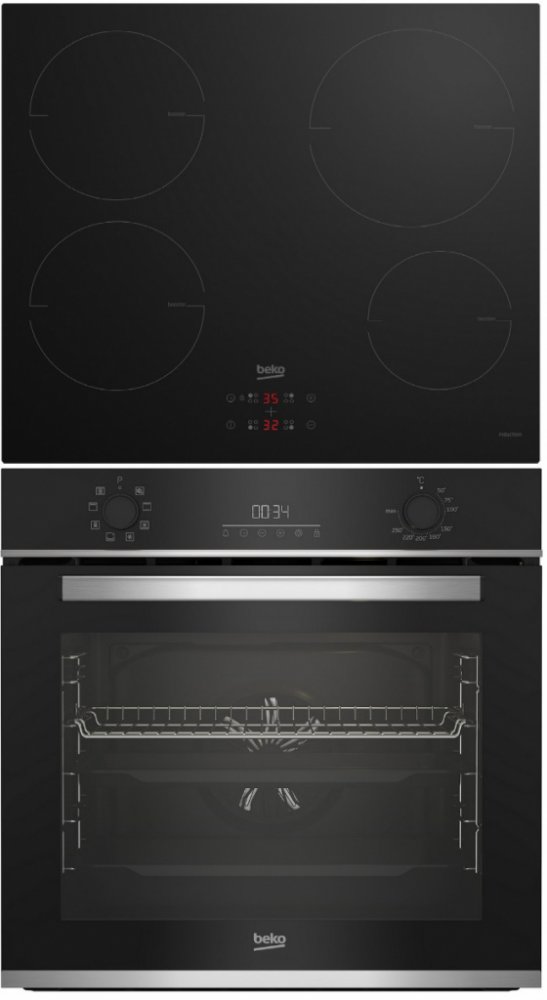 Trouba Beko Beyond BBIM12300X, 3D pečení s kruhovým topným tělesem, SimpleSteam čištění s párou, Počet programů: 8 + Indukční varná deska Beko Beyond HII64400MT 4 indukční zóny, senzorové dotykové ovládání, indikátor zapnutí, digitální displej, časovač, booster, dětská pojistka.