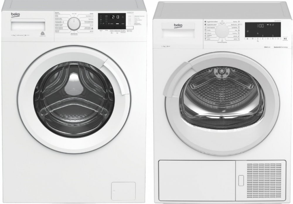 Pračka Beko WUE6512CSX0, elektronická, LED displej, kontrola vyváženosti, ball system, automatické přizpůsobení množství vody, poniklované topné těleso s až 100-násobnou životností + Slim sušička Beko EDS74251CSH1W s hloubkou jen 46 cm se vejde i do úzkých panelákových dveří nebo na slim pračku. Díky tepelnému čerpadlu suší šetrně, ale i úsporně.