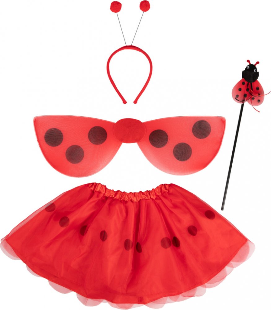 Set čtyř doplňků ve velikosti 4-6 let je ideální k dotvoření kostýmu berušky na tematickou párty, karneval nebo jen tak na hraní. Set doplňků k vytvoření kostýmu berušky, obsahuje 4 kusy a je dostupný ve velikostech 3-4 roky a 4-6 let. Perfektní volba na tematickou párty, karneval nebo jen tak na hraní!Tento dětský set je laděný do červené a černé barvy a obsahuje čelenku s tykadly, hůlku s beruškou, křídla a tylovou sukni s potiskem puntíků.Pro další párty doplňky či dekorace s tematikou jara, květin a broučků můžete navštívit naši katagorii Jaro a květiny.Velikosti: 3-4 a 4-6 letMateriál: 100% polyesterBalení obsahuje: čelenku, hůlku, křídla a sukniNevhodné pro děti do 3 let.