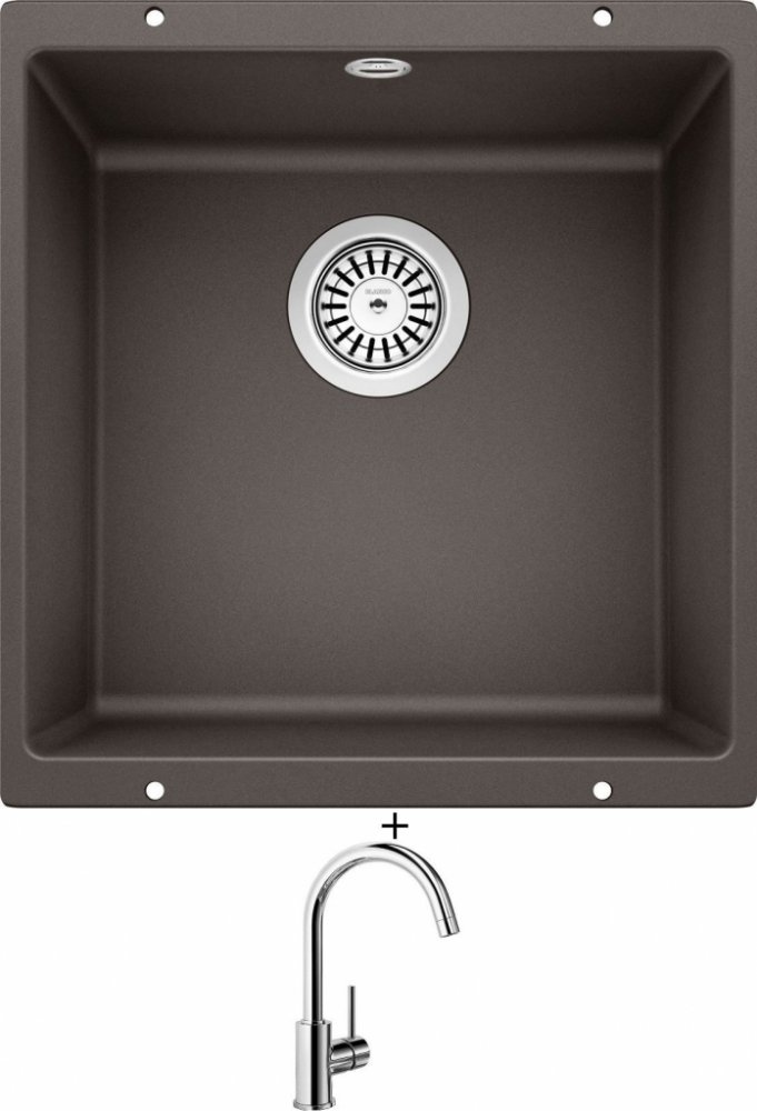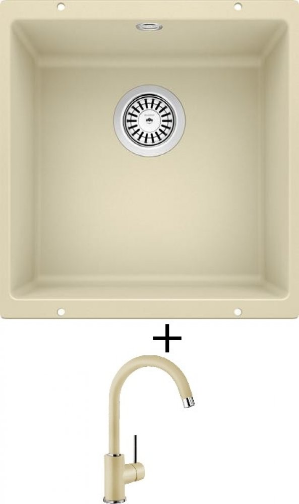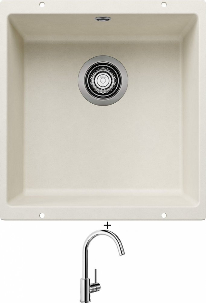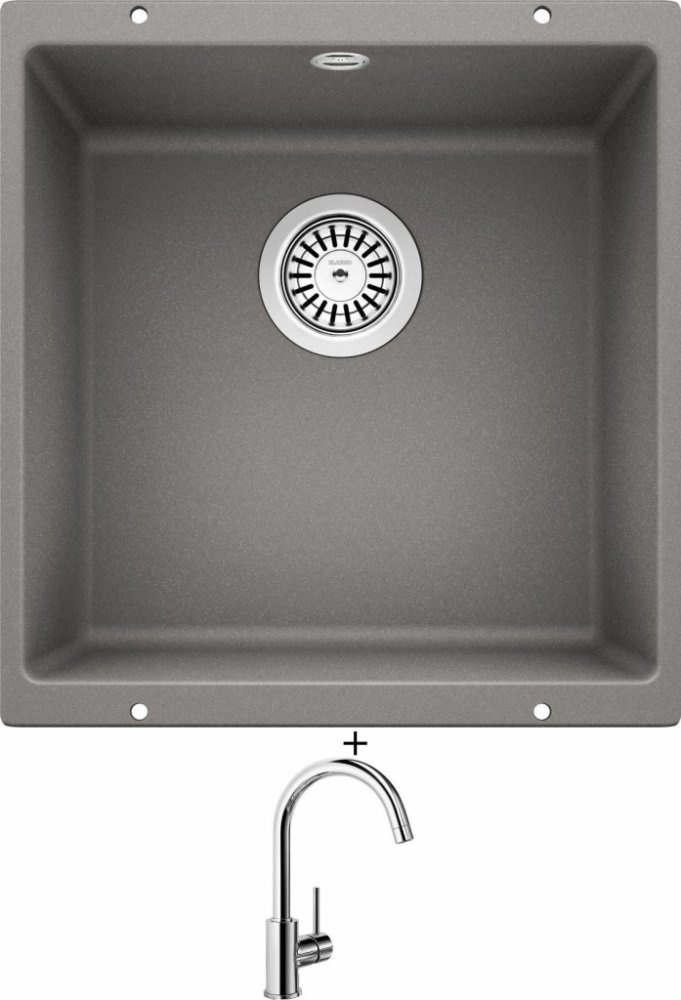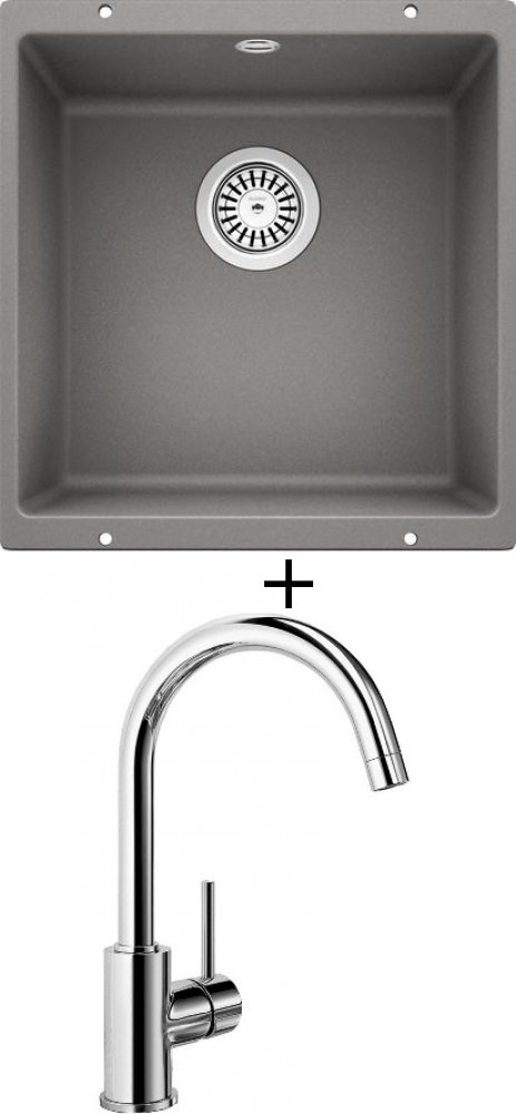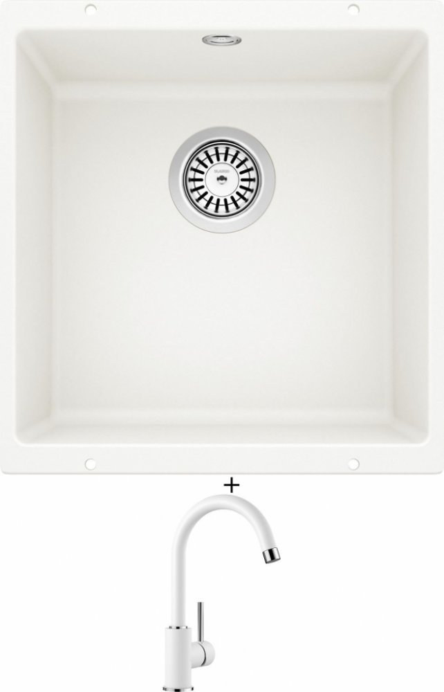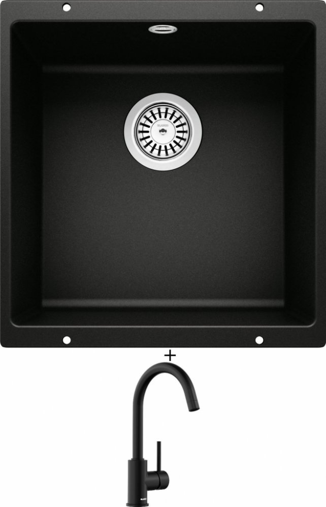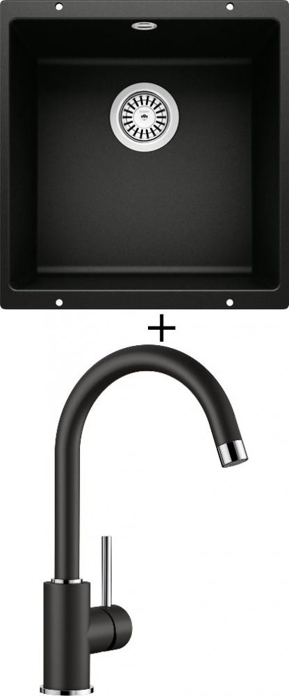 Granitový dřez Blanco Rotan 400-U 40x40 cm černý 526097 - počet mís: 1 - vhodné pro šířku skříňky od 50 cm - bez odkapávače - bez otvoru pro baterii - se směšovací baterií - bez sifonu - průměr odtoku 3 1/2" - rozměry dřezu: 43/46 cm - rozměry hlavní mísy: 40/40 cm - hloubka přihrádky: 19 cm Blanco trubkový dřezový sifon bílý 137267 - standard- trubkový- s pevným připojením 50 mm- materiál: plast- barva: bílá Blanco Mida stojánková kuchyňská baterie chrom 517742 - výška baterie: výška 32,7 cm- vysoký tlak - pohyblivá výtoková trubice otočná o 360°- požadovaný průměr otvoru pro baterii 35 mm- keramická hlava- flexibilní připojovací hadice o délce 35 cm a matice 3/8''- barva: chrom - záruka: 2 roky