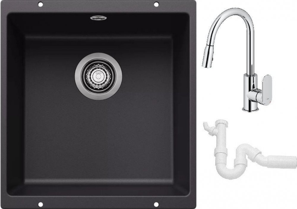 Granitový dřez Blanco Rotan 400-U 40x40 cm černý 526097 - počet mís: 1 - vhodné pro šířku skříňky od 50 cm - bez odkapávače - bez otvoru pro baterii - se směšovací baterií - bez sifonu - průměr odtoku 3 1/2" - rozměry dřezu: 43/46 cm - rozměry hlavní mísy: 40/40 cm - hloubka komory: 19 cm Blanco trubkový dřezový sifon bílý 137267 - standard- trubkový- s pevným připojením 50 mm- materiál: plast- barva: bílá Kuchyňská baterie Oltens Lista s vytahovacím výtokem chrom 35202100- jednopáková kuchyňská baterie- vybavena keramickou kartuší pro přesný provoz po celou dobu životnosti baterie- baterie je díky povrchové úpravě DoubleChrome odolná proti znečištění a zašmodrchání- její lesk vydrží dlouhá léta- kuchyňská baterie Oltens Lista byla navržena s ohledem na funkčnost a ergonomii- charakteristický tvar výsuvné výpusti s možností otáčení výtokové trubice o 360°. - práce v kuchyni je pohodlnější a komfortnější- mixér má výsuvnou výpusť zakončenou dvouproudovým perlátorem s tlakovým spínačem- přepínání výtoku se provádí pomocí elegantního tlačítka- baterie je ideální pro dvojité dřezy; vytahovací výtok umožňuje používat obě komory dřezu- tvar a výška výpusti umožňuje naplnit vodou i velké hrnce- komplet s připojovacími hadicemi G3/8 o délce 450 mm- baterie má systém snadné montáže- lze použít s průtokovými ohřívači vody- materiál mosaz- barva chrom