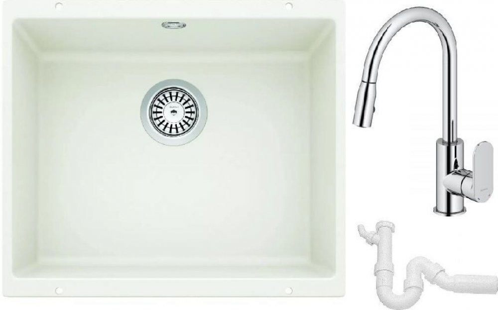 Granitový dřez Blanco Rotan 500-U 50x40 cm bílý 523076 - počet mís: 1 - vhodné pro šířku skříňky od 60 cm - bez odkapávače - bez otvoru pro baterii - se směšovací baterií - bez sifonu - průměr odtoku 3 1/2" - rozměry dřezu: 53/46 cm - rozměry hlavní mísy: 50/40 cm - hloubka komory: 19 cm Trubkový dřezový sifon Blanco bílý 137267 - standard- trubkový- s pevným připojením 50 mm- materiál: plast- barva: bílá Kuchyňská baterie Oltens Lista s vytahovacím výtokem chrom 35202100- jednopáková kuchyňská baterie- vybavena keramickou kartuší pro přesný provoz po celou dobu životnosti baterie- baterie je díky povrchové úpravě DoubleChrome odolná proti znečištění a zašmodrchání- její lesk vydrží dlouhá léta- kuchyňská baterie Lista od společnosti Oltens byla navržena s ohledem na funkčnost a ergonomii- charakteristický tvar výsuvné výpusti s možností otáčení výtokové trubice o 360°. - práce v kuchyni je pohodlnější a komfortnější- baterie má výsuvnou výpusť zakončenou dvouproudovým perlátorem s tlakovým spínačem- přepínání výtoku se provádí pomocí elegantního tlačítka- baterie je ideální pro dvojité dřezy; vytahovací výtok umožňuje používat obě komory dřezu- tvar a výška výpusti umožňuje naplnit vodou i velké hrnce- připojovací hadice G3/8, délka 450 mm, součástí sady- baterie má systém snadné montáže- lze použít s průtokovými ohřívači vody- materiál mosaz- barva chrom