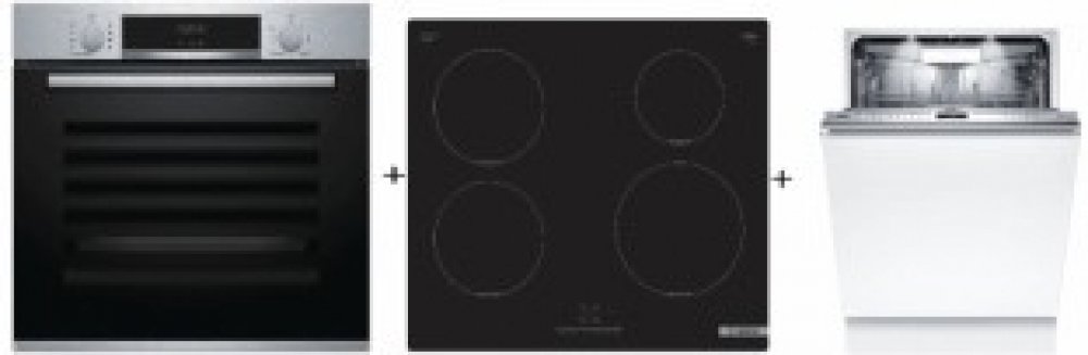 Set vestavných spotřebičů Bosch - horkovzdušná trouba + indukční varná deska + myčka nádobí