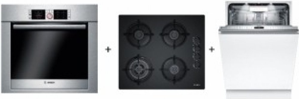 Set vestavných spotřebičů Bosch - Horkovzskušná trouba + plynová varná deska + vestavná myčka na nádobí