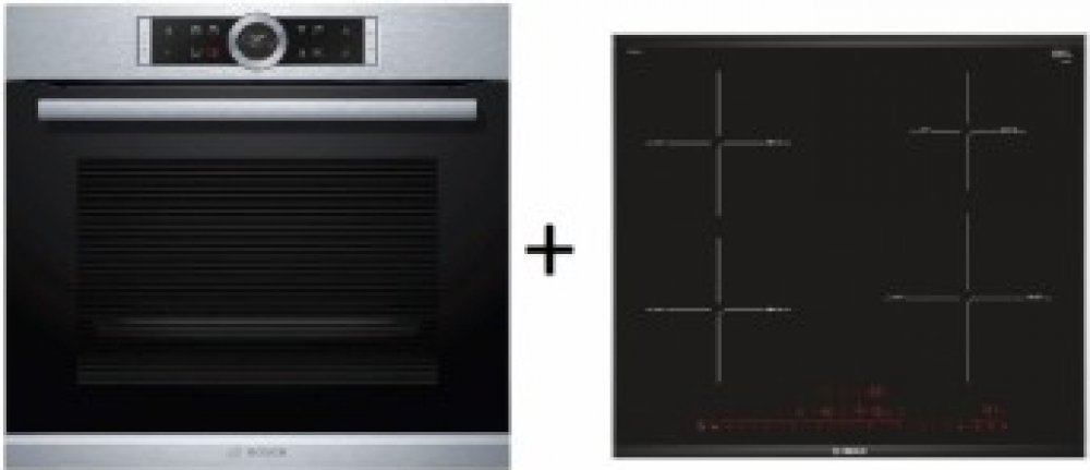 Cenově výhodný vestavný set spotřebičů bosch obsahuje tyto produkty: trouba bosch HBG655NS1, deska bosch PIE675DC1E.