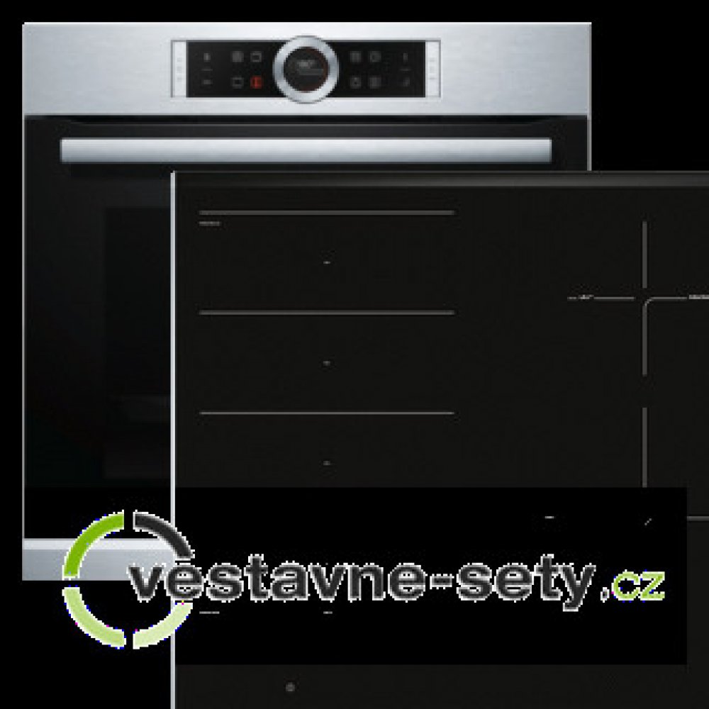 Cenově výhodný vestavný set spotřebičů bosch obsahuje tyto produkty: trouba bosch HBG655NS1, deska bosch PXE675DC1E.