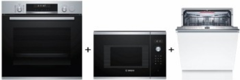 Set spotřebičů Bosch - vestavná pečící trouba + mikrovlnná trouba + indukční varná deska