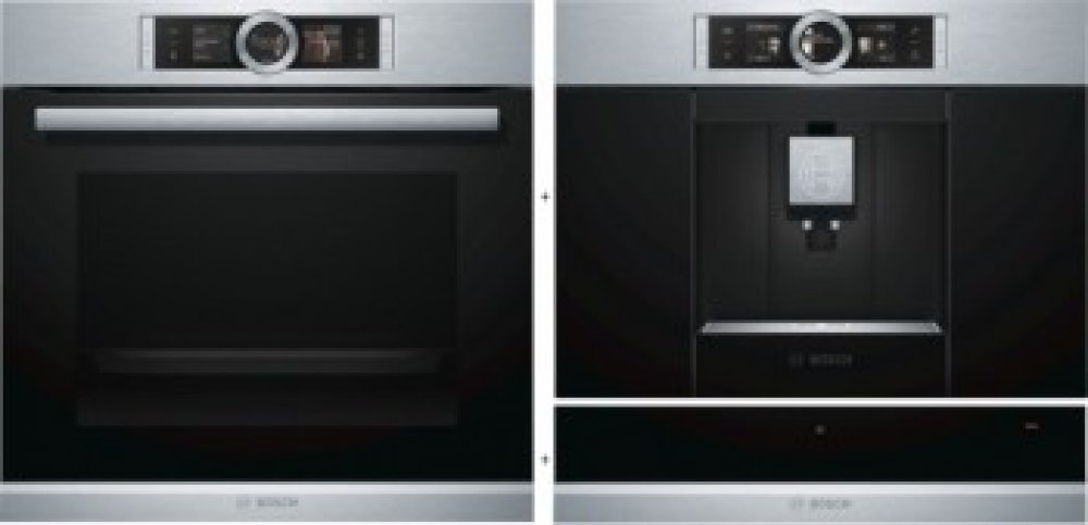 Set vestavných spotřebičů Bosch - parní trouba + kávovar + ohřevná zásuvka