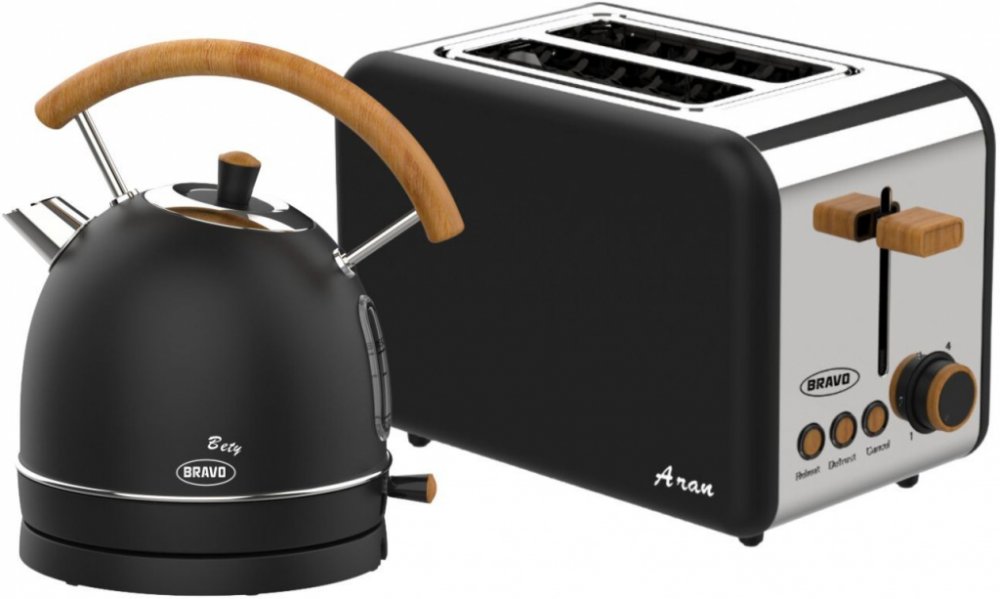 SADA obsahuje 1ks Rychlovarná konvice BRAVO B -4933 Bety černá+ 1ks Topinkovač BRAVO B-4935 černý