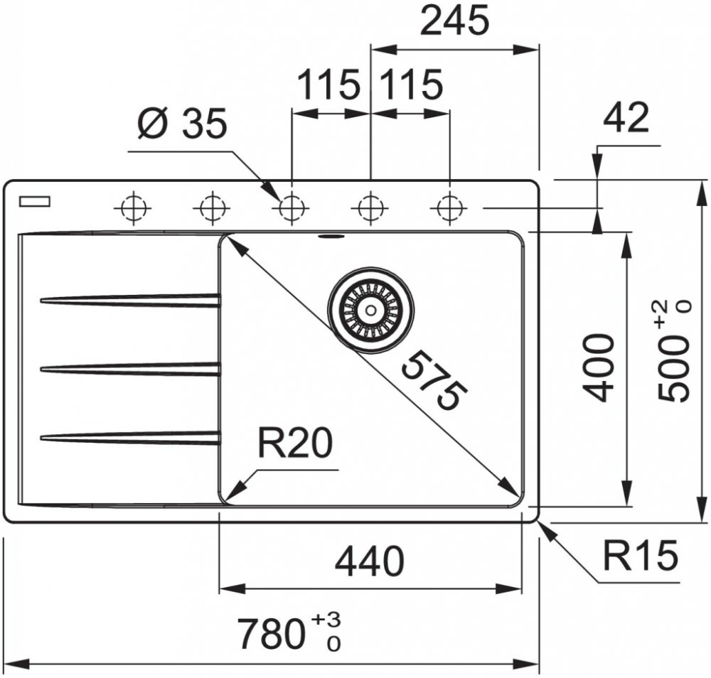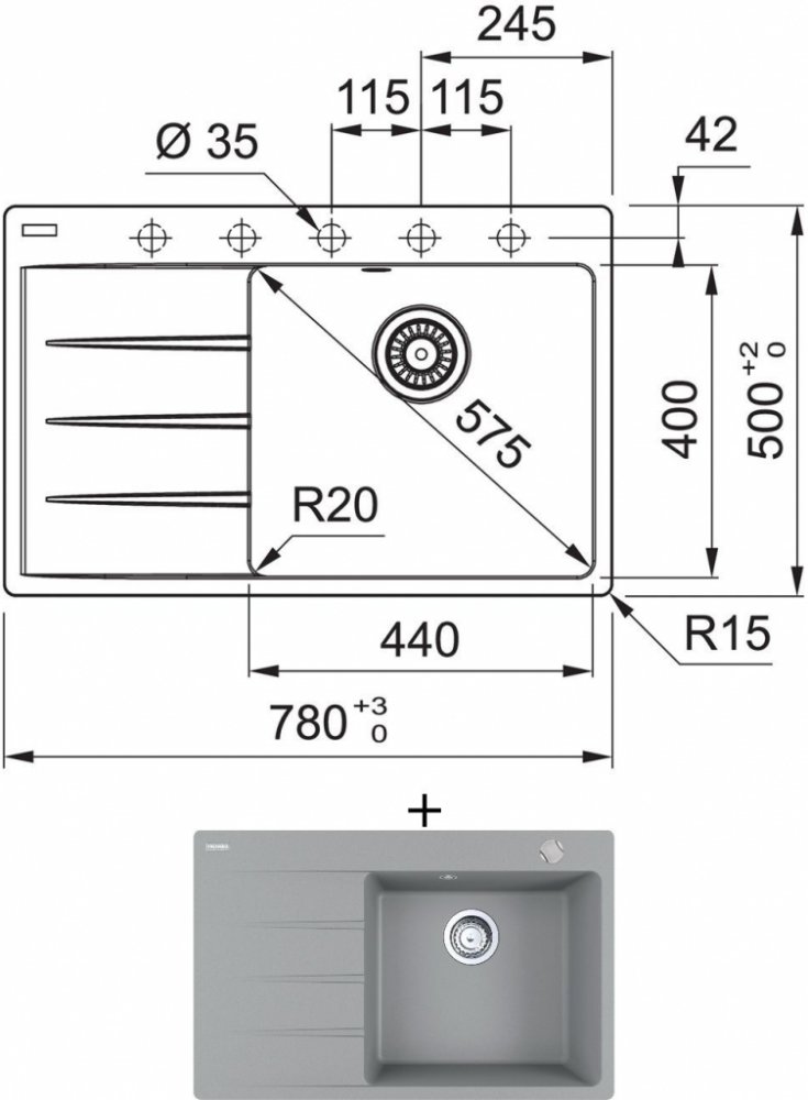 Rozměry dřezu: 780 × 500 mm