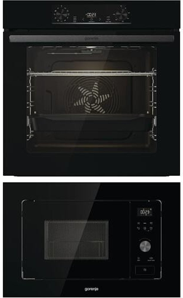 Trouba Gorenje BO6735E05B, energetická třída A, extra velký objem SuperSize, zavírání dvířek GentleClose, STEPBake krokové pečení, funkce Gratinování, v černém provedení + Vestavná mikrovlnná trouba Gorenje BM201AG1BG, Vnitřní objem: 20 l, Mikrovlnný výkon: 800 W, Výkon grilu: 1000 W, Vestavěný displej, Barva: černá, Kovový rámeček.
