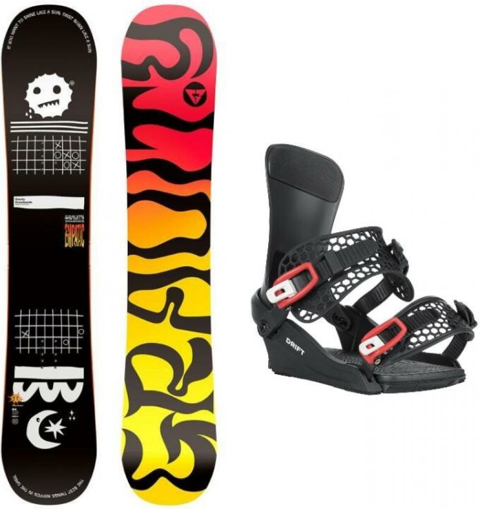 Set produktů za zvýhodněnou cenu. Freestylové prkno s twin shape a hybridním prohnutím cam-rock nabízí pohodlnou jízdu ve switchi, snadné zatáčení a spolehlivé držení hrany. Střední flexibilita je ideální do snowparku i na sjezdovku.