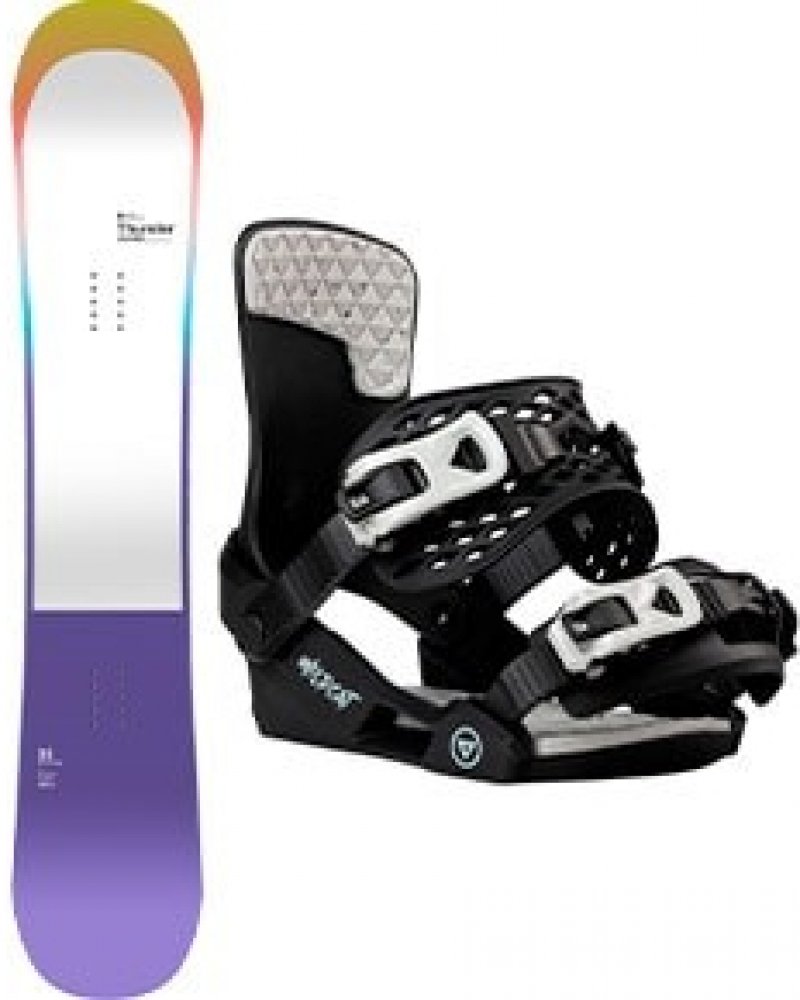 Výhodný komplet pro mladé riderky je postaven na twinovém snowboardu Gravity Thunder Jr. Hybridní CamRock prohnutí je zárukou hravosti a skvělé ovladatelnosti, zatímco biaxiální laminace, nebo polyuretanové sidewally, se postarají o odolnost při prvních pokusech na railech a bedýnkách. Zkrátka ideální prkno pro začínající i pokročilé juniorky.