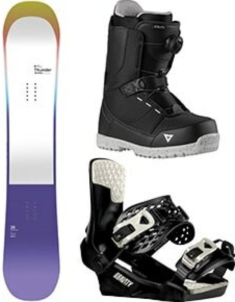 Výhodný komplet pro mladé riderky je postaven na twinovém snowboardu Gravity Thunder Jr. Hybridní CamRock prohnutí je zárukou hravosti a skvělé ovladatelnosti, zatímco biaxiální laminace, nebo polyuretanové sidewally, se postarají o odolnost při prvních pokusech na railech a bedýnkách. Zkrátka ideální prkno pro začínající i pokročilé juniorky.