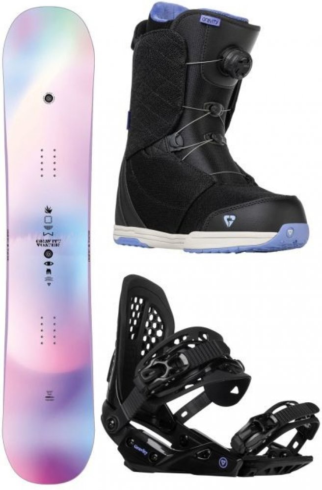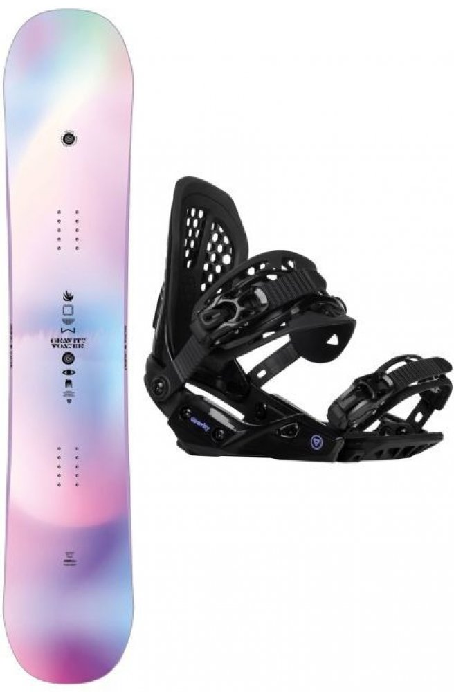 Základem kompletu je dámský snowboard Gravity Voayer, zábavné freestylové prkno, které si ale hravě poradí i na sjezdovce a ve freeridu. Hybridní prohnutí CamRock s directional twin shapem jsou zárukou vyladěné ovladatelnosti a hravosti. Díky polyuretanovým sidewallům se nemusíš bát ho poslat na jakoukoli překážku v parku.