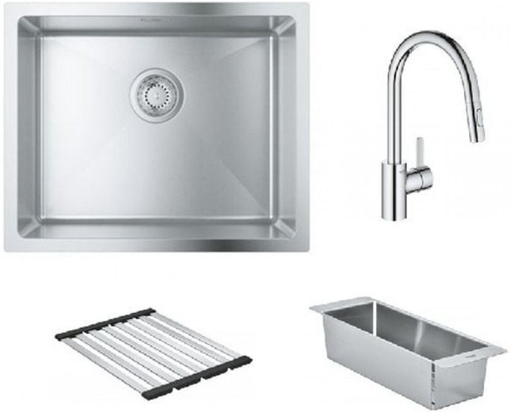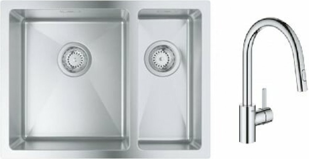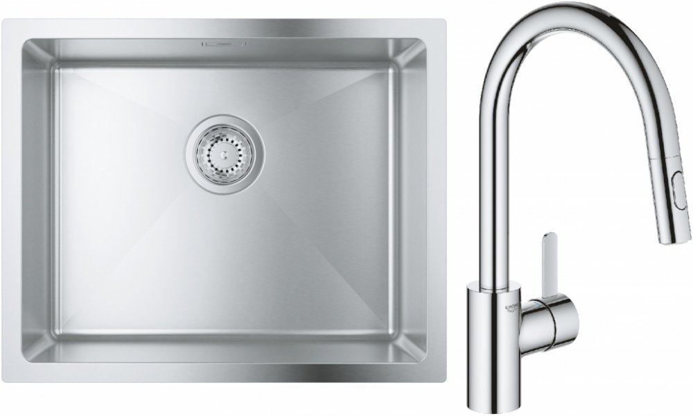 Grohe K700 nerezový dřez 55x45 cm satén 31574SD1- model: K700U 60-S 54,4/44,4 1,0- vnější rozměry: 55 x 45 cm- rozměry mísy: 50 x 40 cm- hloubka mísy: 20 cm- Grohe Whisper- typ instalace: vestavná, pod omítku nebo pod skříňku - výřez (montáž na desku): 535 x 435 mm - výřez (zápustná montáž): (R3) (rozměry 551 x 451 - hloubka R8 -3,5 mm) - minimální délka skříně: 60 cm- se systémem rychlé montáže Grohe FastFixation- výřez: 50c x 40 cm- odtok: Ø 3,5"/90 mm s odtokovým sítkem- odtoková souprava se sifonem, odtokovým sítkem, instalační sadou- počet montážních držáků v balení: 8- materiál: nerezová ocel AISI 304 (V2A)- tloušťka materiálu: 2,5 mm: materiál: A230: 1 mm- Povrchová úprava Grohe StarLight- povrchová úprava: Povrchová úprava: saténový povrchGrohe Eurosmart Cosmopolitan stojánková kuchyňská baterie chrom 31481001- vysoká výtoková trubice-jednootvorová instalace- Grohe StarLight chromová povrchová úprava- Grohe SilkMove 35 mm keramická kartuše- Grohe EasyDock snadno vytahovací výsuvná sprcha- Grohe HE Zero oddělené vodní kanály - žádný kontakt vody s olovem nebo niklem-s výsuvným postřikovačem a dvěma režimy postřiku-přepínání: perlátor/sprcha SpeedClean-nastavitelný omezovač průtoku-otočná výtoková trubice-úhel otáčení 360°-ochrana proti zpětnému toku-flexibilní připojovací hadice-systém rychlého šroubeníGrohe Eurosmart Cosmopolitan stojánková kuchyňská baterie chrom 31481001 Moderní kuchyně potřebuje robustní řešení. Grohe Eurosmart Cosmopolitan stojánková kuchyňská baterie chrom 31481001 kombinuje stylový design s praktickými funkcemi. Povrchová úprava StarLight Chrome zajišťuje luxusní vzhled a odolnost proti skvrnám, takže dokonale splyne s každým interiérem. Funkčnost na prvním místě Vysoká výtoková trubice otočná o 360° vám poskytne naprostou volnost při každodenní kuchyňské práci. Technologie Grohe SilkMove s 35mm keramickou hlavicí zaručuje přesné ovládání rozstřiku. Výsuvná výlevka s funkcí EasyDock usnadňuje mytí většího nádobí a udržuje dřez v čistotě. Zdraví a bezpečnost Kuchyňská baterie Grohe Eurosmart Cosmopolitan využívá technologii HE Zero, která zajišťuje, že voda protéká oddělenými kanálky bez kontaktu s olovem a niklem. Toto řešení zajišťuje její čistotu a bezpečnost pro zdraví celé rodiny. Praktická technická řešení Přepínač perlátoru/sprchy SpeedClean umožňuje zvolit správný proud podle vašich potřeb. Díky jednootvorové instalaci s rychlým instalačním systémem a flexibilním připojovacím hadicím je instalace rychlá a snadná. Vyberte si kuchyňskou baterii Grohe Eurosmart Cosmopolitan a přesvědčte se, jak vám praktická řešení mohou usnadnit každodenní kuchyňské práce. Nastavitelný omezovač průtoku vám dále pomůže kontrolovat spotřebu vody.