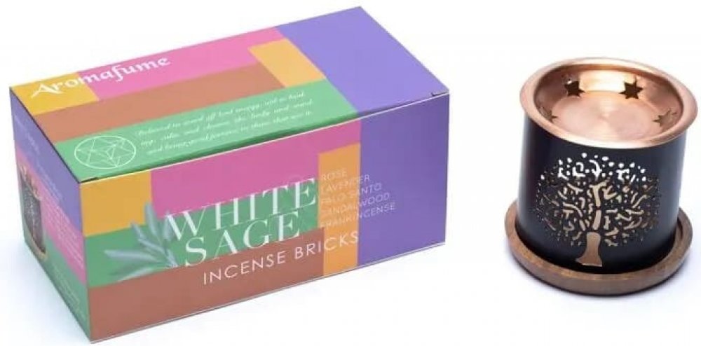 Aromafume Kadidelnice Tree of Life - pro vonné cihličky + sada vonných cihliček White sage 12 ks obsahuje: