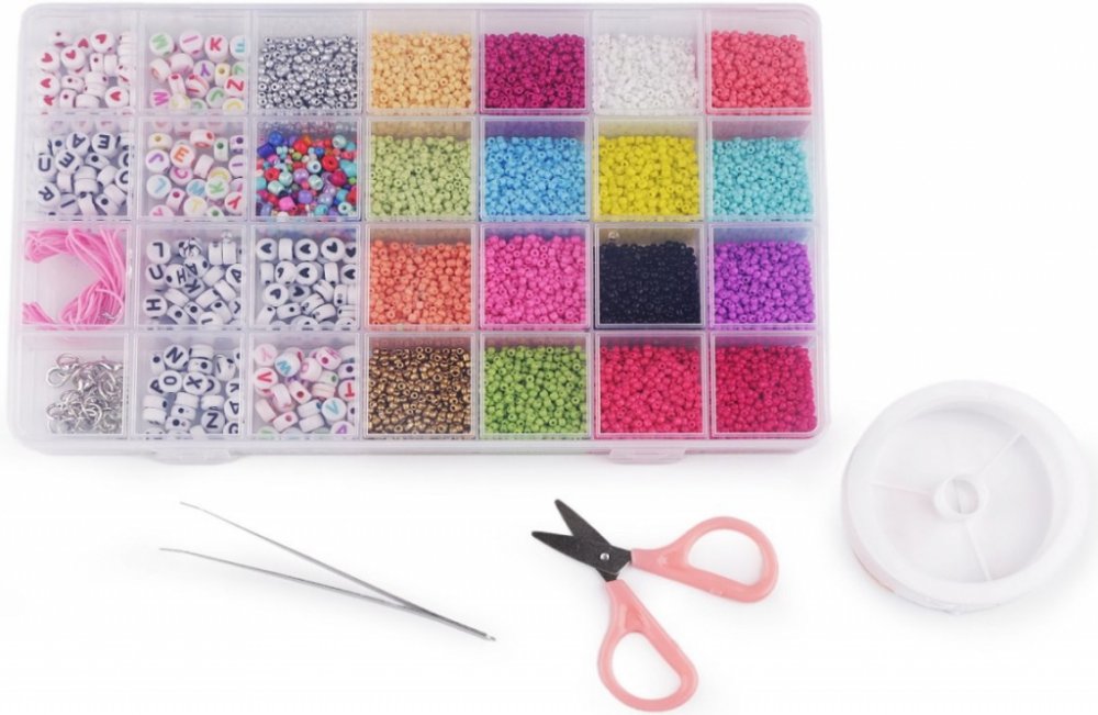 Sada rokajlů a plastových korálků v boxu potěší malé i velké korálkářky.