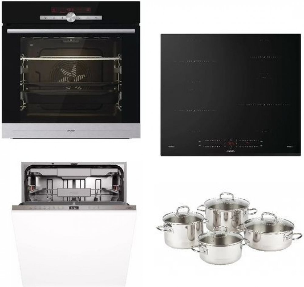 Mora MORASET01NADOBI VTS786BXB trouba + VDIS655FF indukční deska + IMB6678 myčka + sada nádobí 1 set