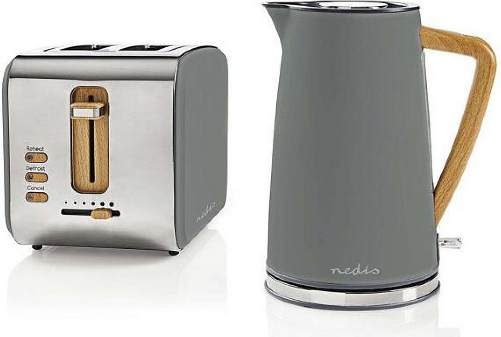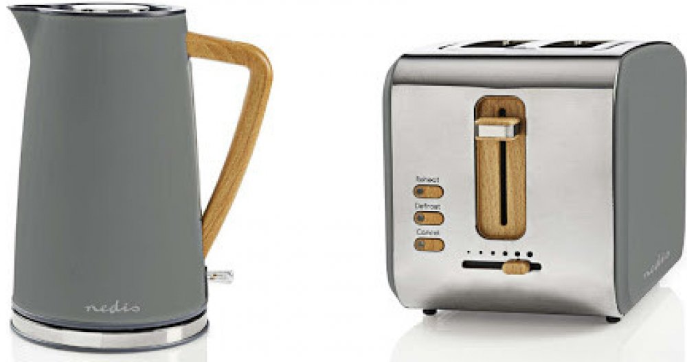 Nedis® sada stylových spotřebičů obsahuje výkonnou rychlovarnou konvici KAWK510EGY a toastovač KABT510EGY za zvýhodněnou cenu.