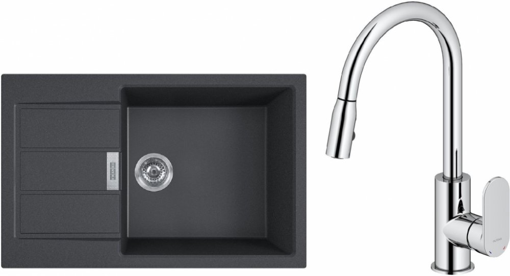 1. Dřez Franke Sirius 2.0 (1430618668) - rozměry: 62 x 50 cm - minimální šířka podstavce: 45 cm - velikost odtoku 3 1/2" - typ přepadu: skrytý - délka výřezu: 60,4 cm - šířka výřezu: 60 cm 60 cm šířka 60 cm šířka 60 cm šířka 60 cm šířka 60 cm šířka 48,4 cm - rozměry mísy: 34,3 x 43,2 cm - hloubka komory: 20 cm - dva vyražené otvory - oboustranný model - vestavěný dřez - odpadní souprava se sifonem v ceně - excentrický ventil s 3,5" sítkem - možnost instalace mlýnku na odpad - automatický výsuvný odtok v nerezovém provedení 3 1/2" - odolný proti poškrábání, UV záření a nárazu - hygienický povrch - žádná ztráta barvy - odolný vůči krátkodobému (do 15 sekund) vystavení vysokým teplotám do 280 °C - odolný vůči rychlým změnám teploty - odolný vůči skvrnám a změně barvy - Tectonite® je inovativní a patentovaný syntetický materiál společnosti Franke, který se skládá z dlouhých skleněných vláken, high-tech povlaku PiMC a jedinečné matné struktury - barva: kamenná šedá 2. Kuchyňská baterie Oltens Lista (35202100) - jednopáková kuchyňská baterie - je vybavena keramickou kartuší, která zajišťuje přesný chod po celou dobu její životnosti - baterie je díky povrchové úpravě DoubleChrome odolná vůči nečistotám a zašlé barvě - její lesk vydrží dlouhá léta - kuchyňská baterie Oltens Lista byla navržena s ohledem na funkčnost a ergonomii - charakteristický tvar vytahovací výpusti s možností otáčení výtoku o 360°. - práce v kuchyni je pohodlnější a komfortnější - mixér má výsuvnou hubici zakončenou dvouproudovým perlátorem s tlakovým spínačem - přepínání výtoku se provádí pomocí elegantního tlačítka - baterie je ideální pro dvojité dřezy; vytahovací výtok umožňuje ovládat obě komory dřezu - tvar a výška výpusti umožňuje naplnit vodou i velké hrnce - komplet s připojovacími hadicemi G3/8 o délce 450 mm - baterie má systém snadné montáže - lze použít s průtokovými ohřívači vody - materiál mosaz- barva chrom