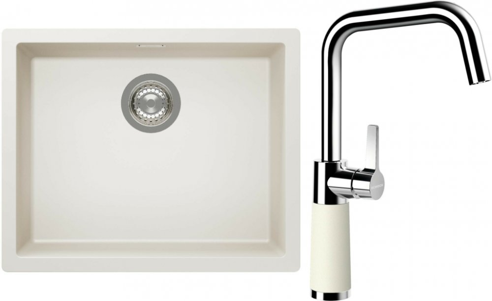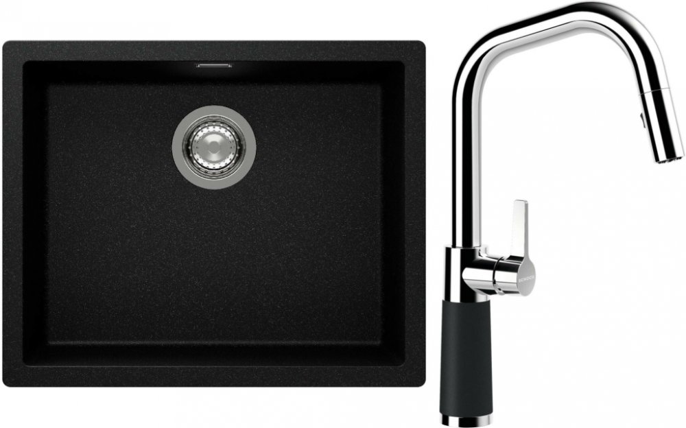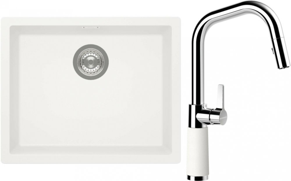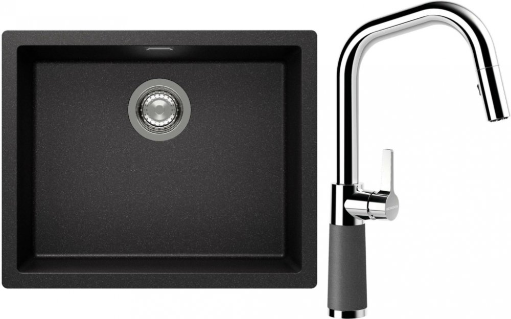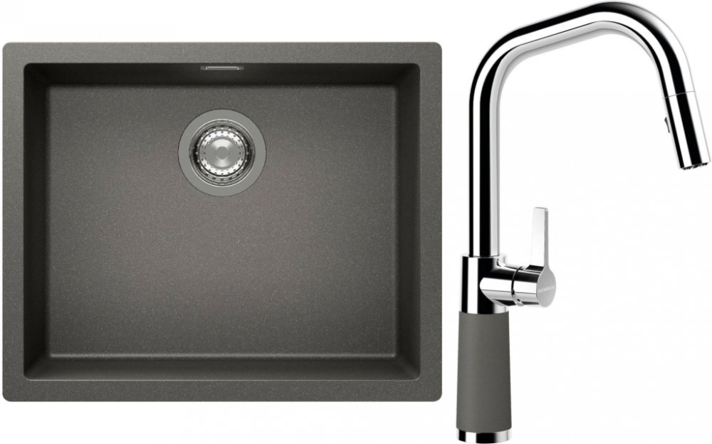 Cenově zvýhodněný set dřezu a baterie Schock S14-8 - obsahuje granitový jednodřez Kaia N-100L Polaris a baterii SC-530 Polaris.