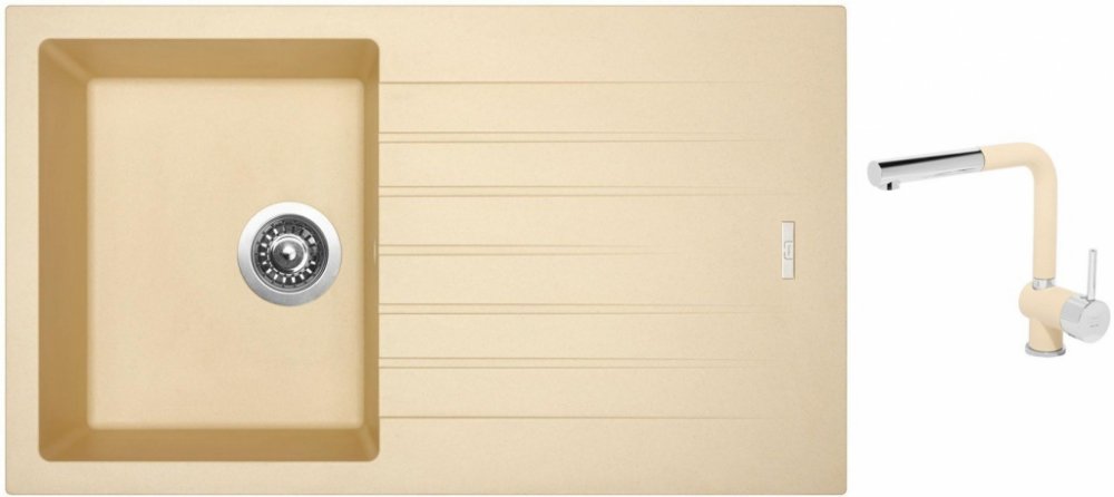 Granitový dřez Sinks PERFECTO 860 Milk Granitový dřez Sinks PERFECTO 860 v barevné variantě Milk je vyroben z vysoce jakostního přírodního granitu, který obsahuje 80% drceného kameniva s příměsí barviv a pojiv. Díky tomu odolává teplotám až 280 C a je velmi odolný proti vrypu a mechanickému poškrábání.