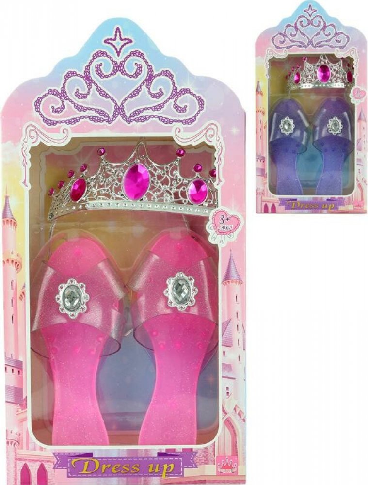 Barevné třpytivé střevíčky a stříbrná zdobená korunka, jako doplněk ke karnevalovému kostýmu "Princezna". 2 barevné varianty.