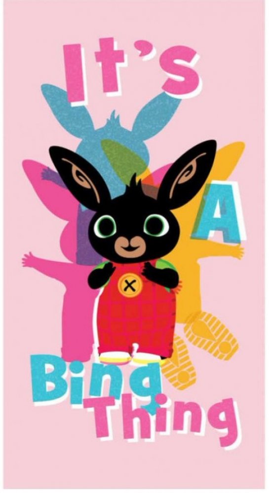 Dětská bavlněná osuška králíček Bing - It's Bing Thing. Je vyrobená ze 100% bavlněného dobře savého froté. Je ideální nejen do koupelny doma, ale i na koupaliště, nebo na pláž třeba na dovolené u moře. Barvy této osušky Zajíček Bing jsou velice intenzivní i po mnoha vypráních. Její rozměry jsou 70 x 140 cm.