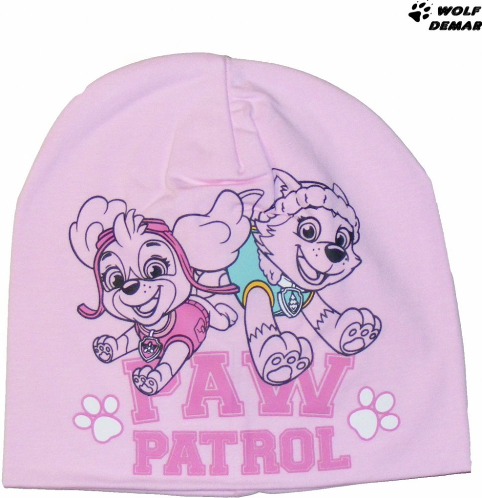 Krásná dívčí čepice s oblíbeným dětským motivem panenek Tlapková patrola. Bavlněná, dvouvrstvá, pěkně pruží.