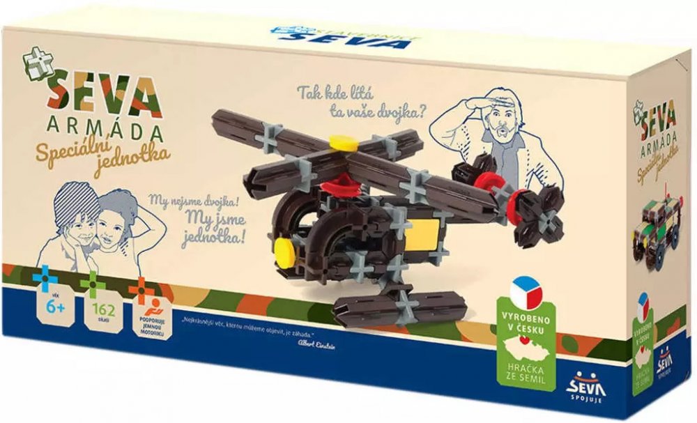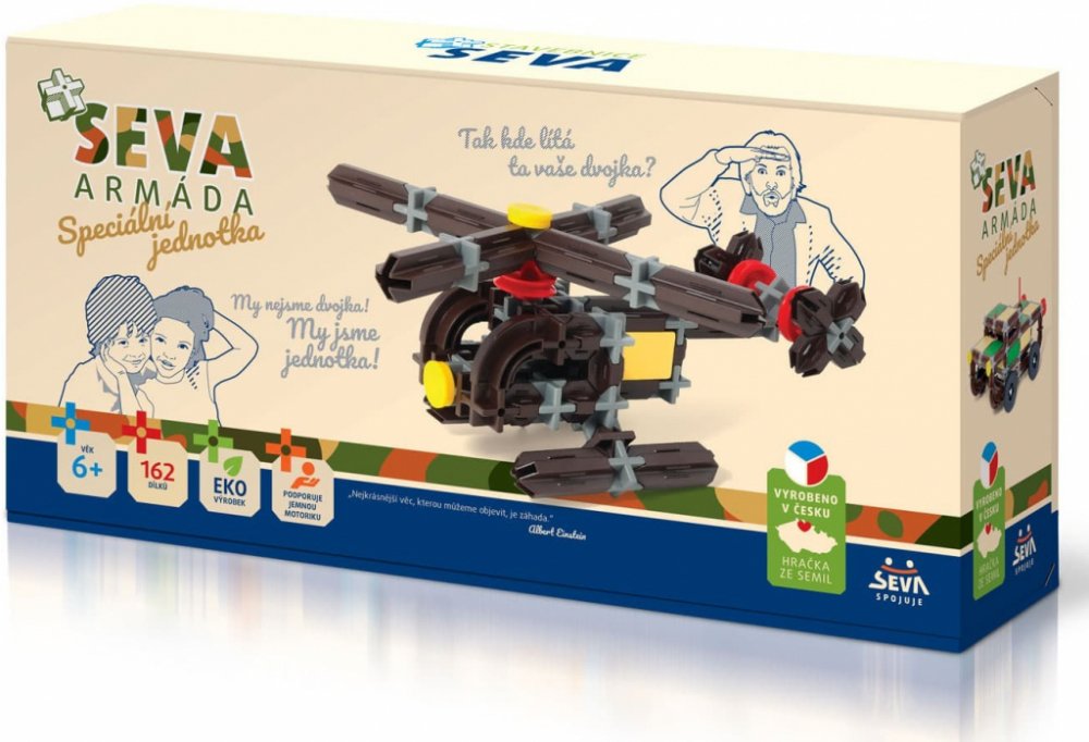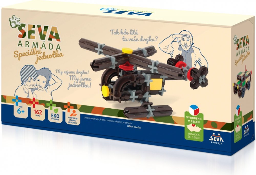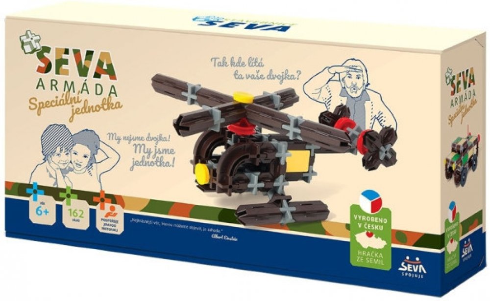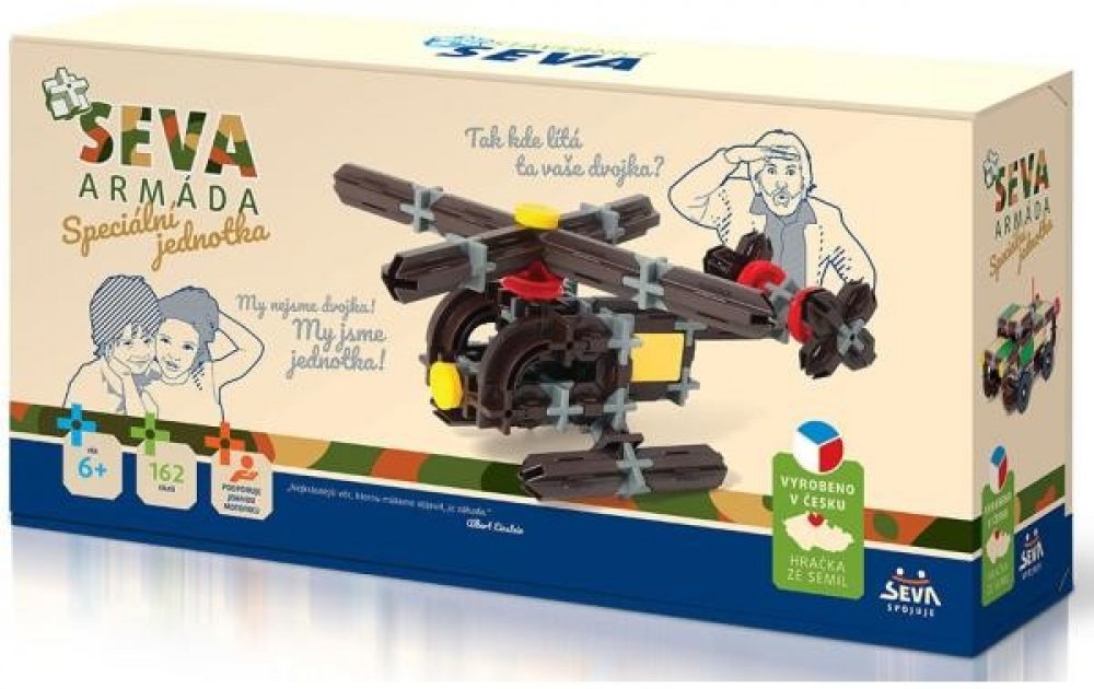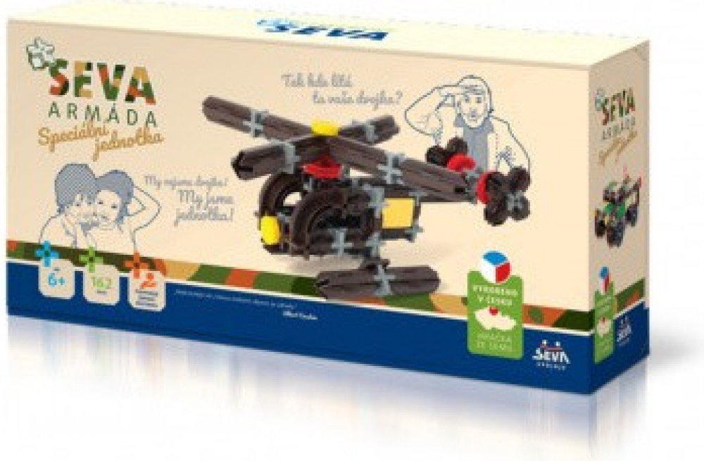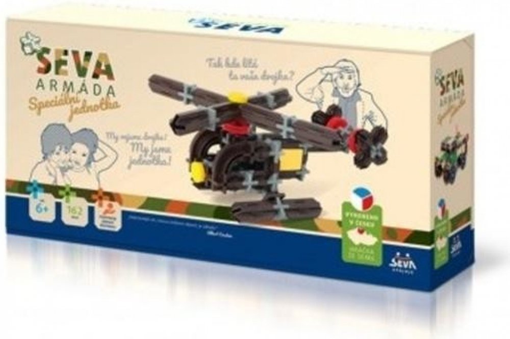 Technické údaje:Obsah balení:Stavebnice Seva Armáda Speciální jednotka plast 162ks v krabici 31,5x16,5x7,5cmPokud není uvedeno jinak, cena se vztahuje na 1 ks produktu.Konkrétní barvu nebo druh výrobku není možné z technických důvodů zvolit, objednávce bude přidělena náhodná varianta dle skladových možností.