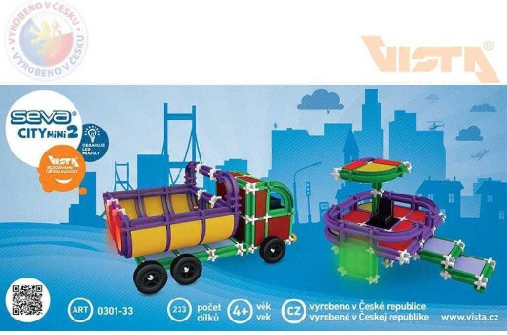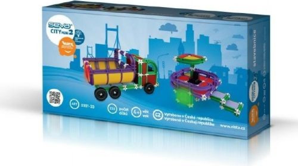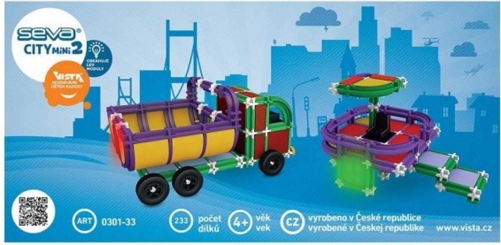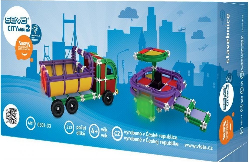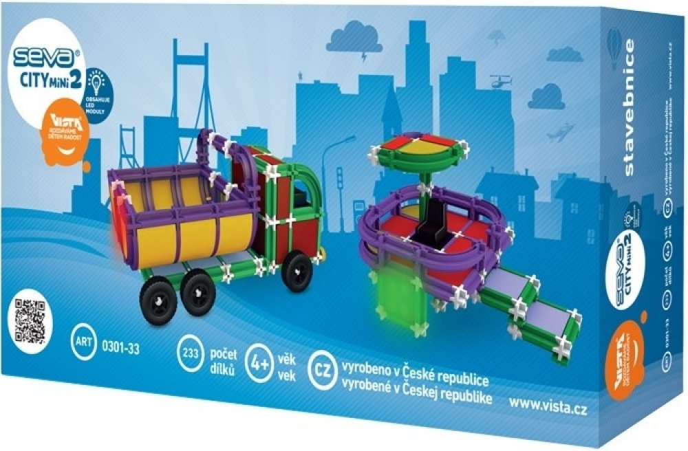 Stavebnice SEVA CITY Mini 2 obsahuje 233 dílků včetně tří unikátních blikajících LED modulů. Jedná se o druhou stavebnice SEVA v historii, která má blikající LED moduly. Stavebnice SEVA CITY Mini 2 díky unikátním