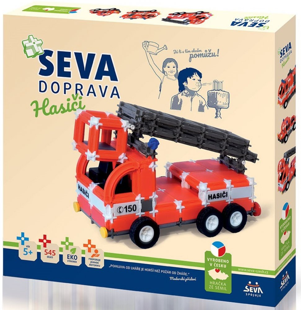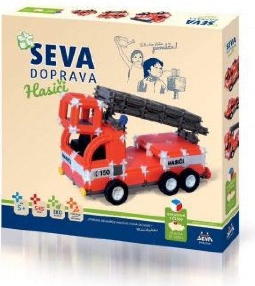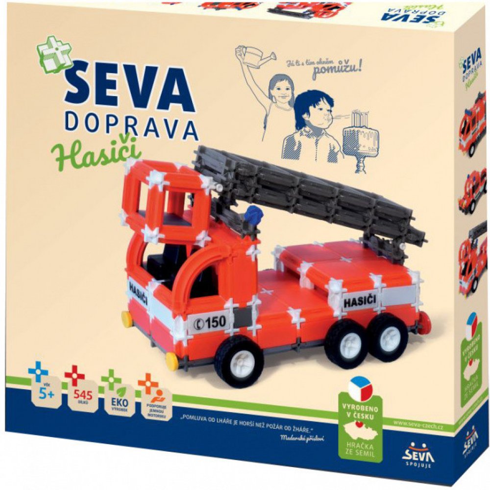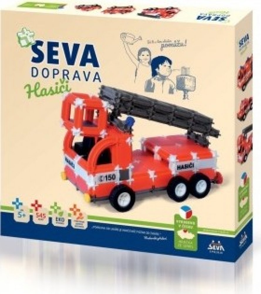 Stavebnice SEVA obsahuje celkem 545 dílků. Malé děti se naučí jednotlivé dílky spojovat. Starší potomci sestaví hasičský vůz, auto s velkou cisternou nebo vytvoří jiné věci podle návodu či podle své fantazie. Z jednotlivých dílků se dá postavit skoro vše. Vaše ratolest si během hraní rozvíjí kreativitu, manuální zručnost a trénuje mysl.