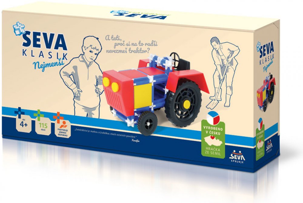 Bestseller značky SEVA – originální traktor, je koncipovaný pro ty nejmenší stavitele. Nyní ho najdete v novém, moderním obalu pod značkou SEVA KLASIK.