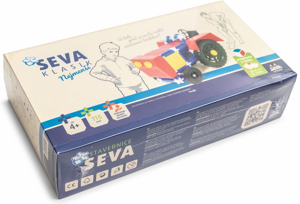 Stavebnice SEVA je kreativní, dětem rozvíjí mysl i manuální zručnost a její variabilita určitě osloví i Vás - můžete si z ní postavit funkční vozidla, stroje, letadla, budovy, nábytek, lodě, vlaky...