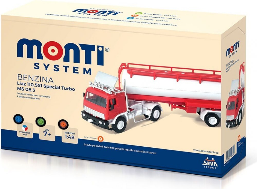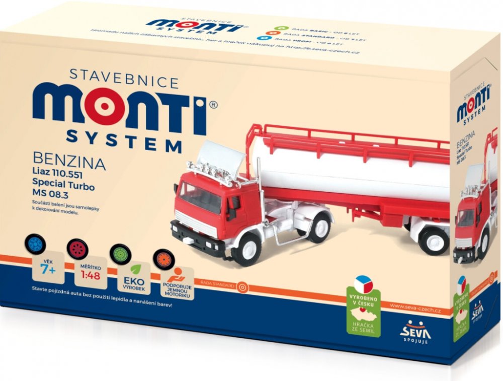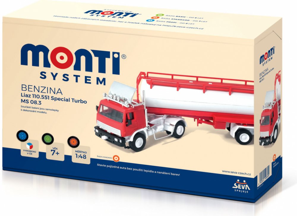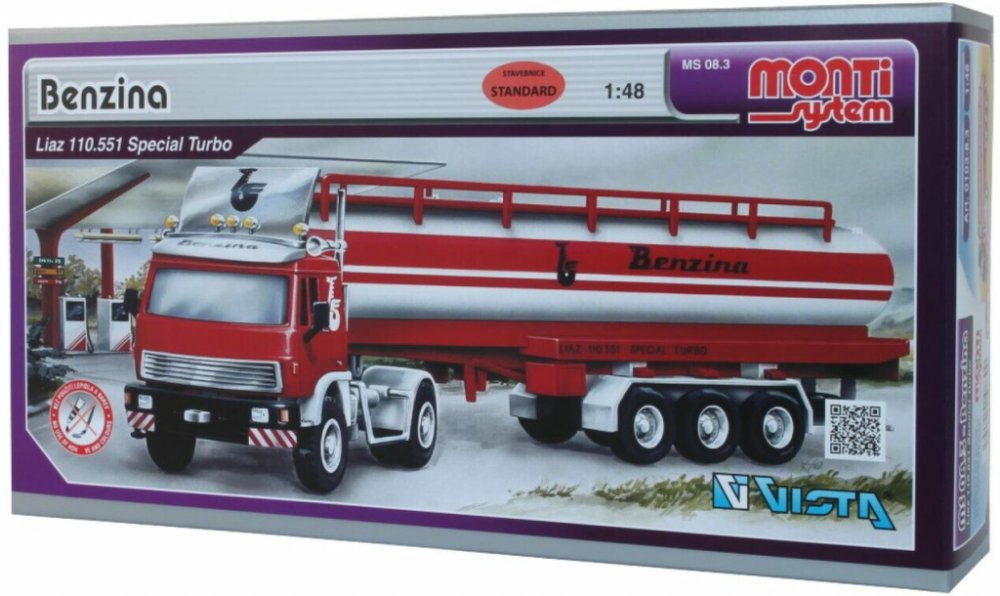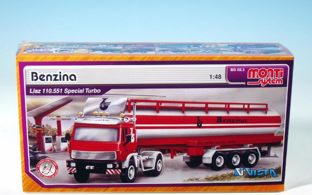 Liaz 110.551 v barvách společnosti Benzina. Měřítko 1:48. Podrobný popis:Liaz 110.551 v barvách společnosti Benzina. Měřítko 1:48. Stavebnice patří do řady modelů Standard. Při stavbě modelů řady Monti System se obejdete bez barev a lepidla a přesto získáte velice pěkný model do sbírky.