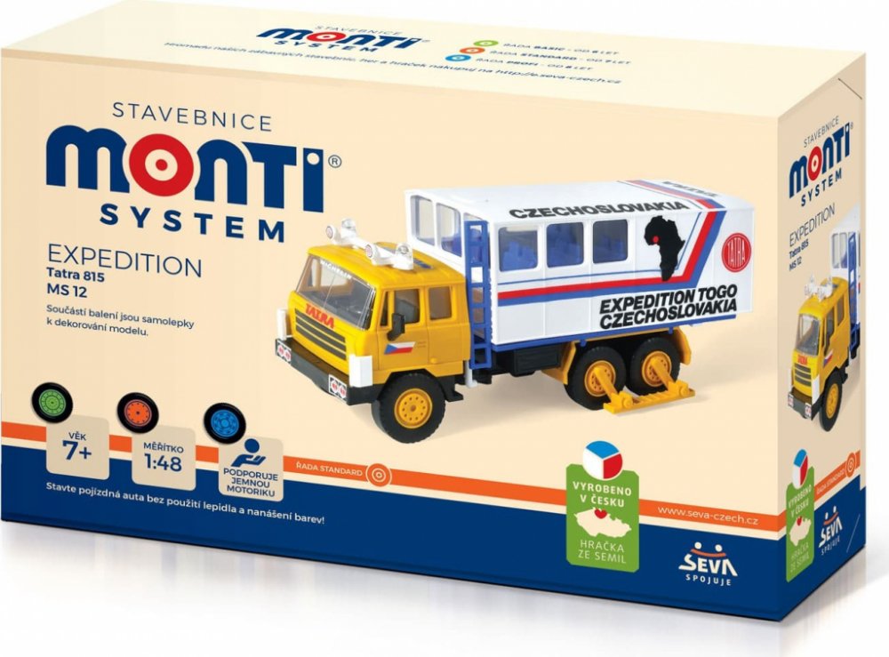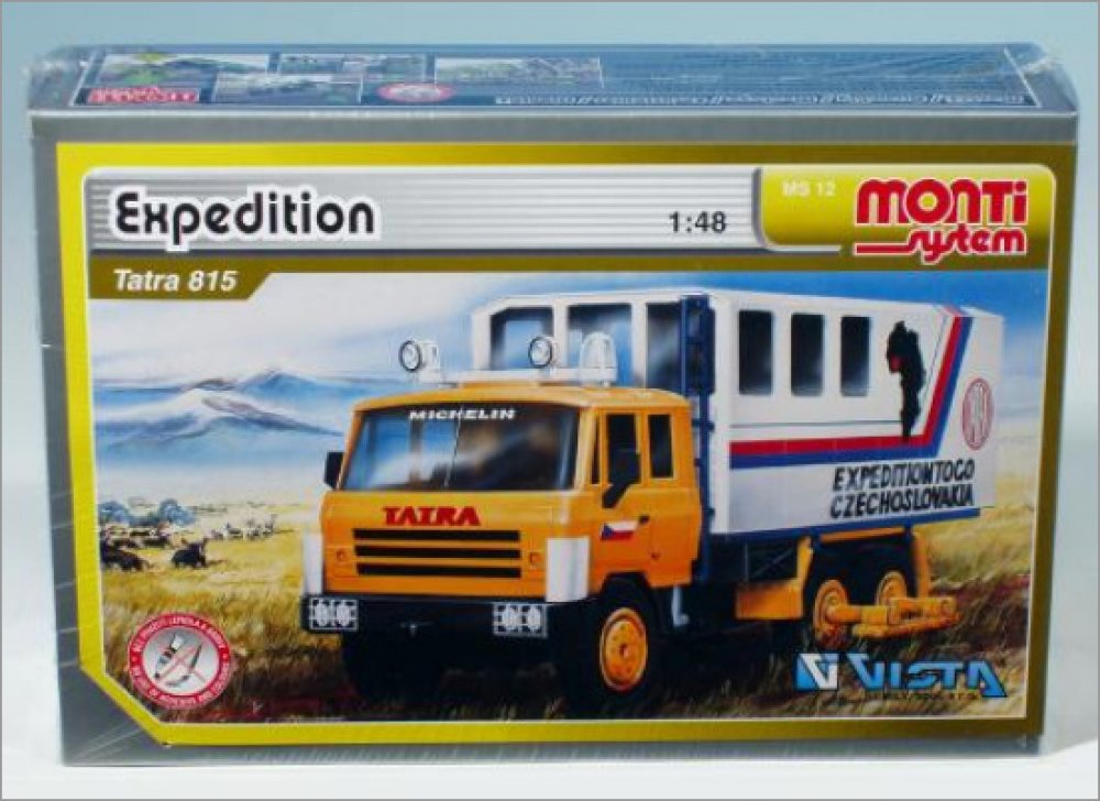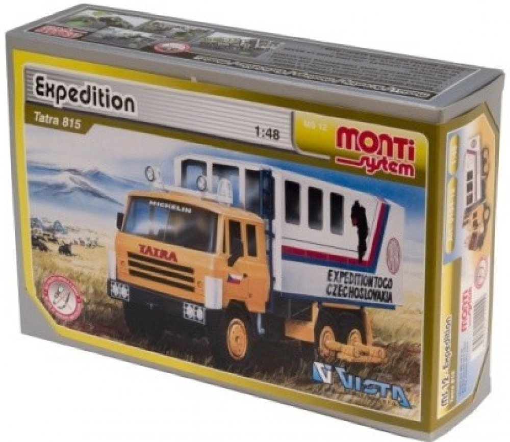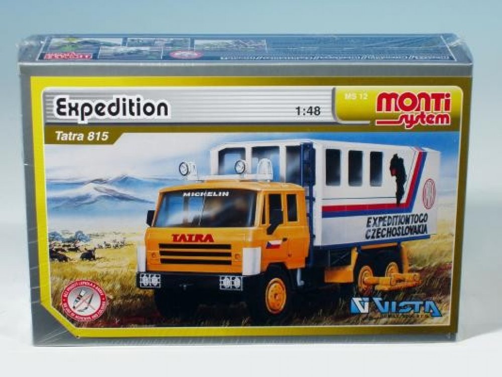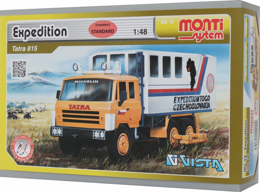 Model Monti System MS č.12 - Expedition je expediční vůz Tatra 815. Tatra 815 Monti System MS 12 v měřítku 1:48 patří do řady modelů Monti System STANDARD, tedy mezi středně složité stavebnice.