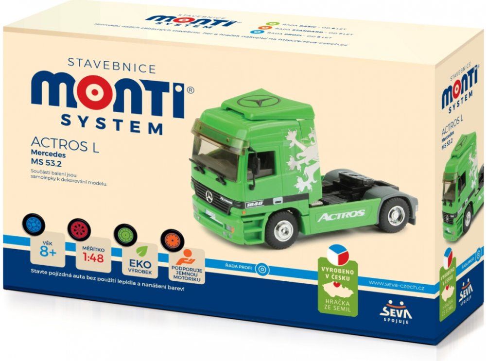 Monti System je legendární česká stavebnice věrných modelů osobních a nákladních aut, s kterými si vyhrají malí i velcí. Modely jsou vyráběny v měřítku 1:48, 1:35 a 1:28. Monti System sestavíte bez lepidla a nanášení barev!