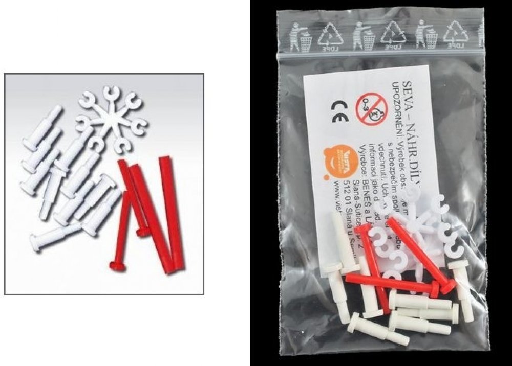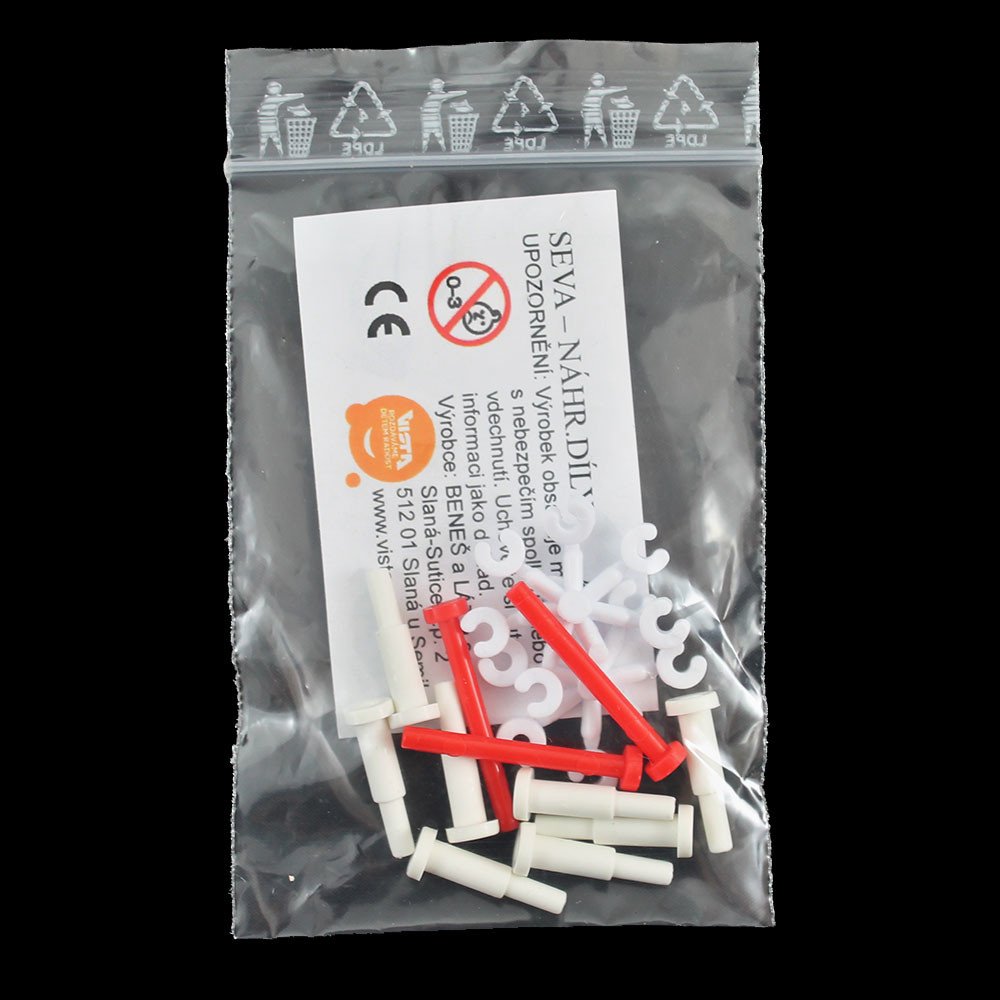 Náhradní díly obsahují dílky ke stavebnicím SEVA, které se nejčastěji ztratí či poškodí