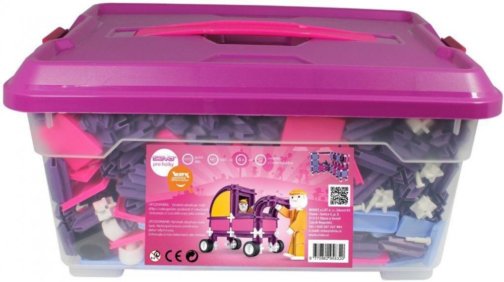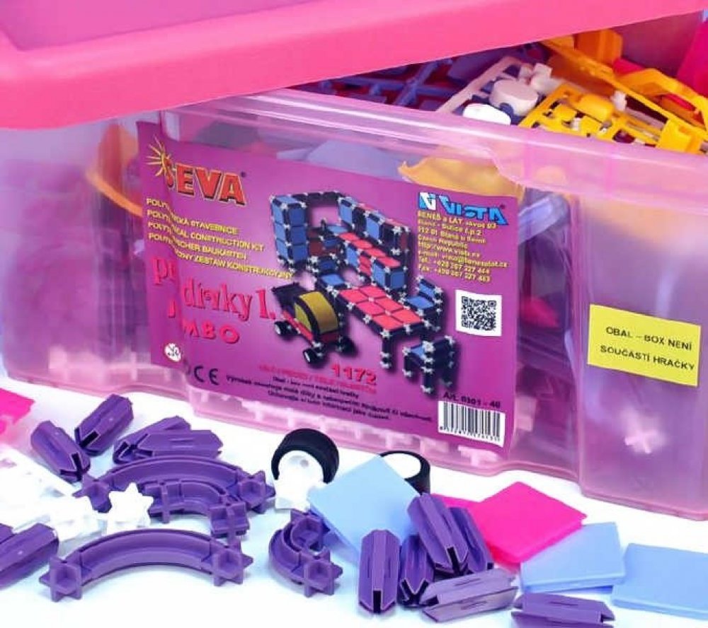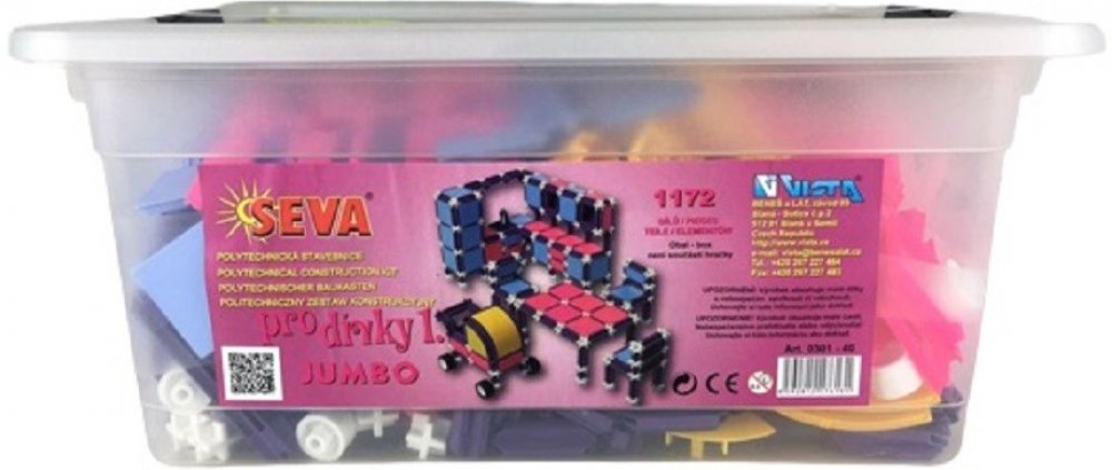 Nejen kluci, ale i holčičky mají rády stavebnici SEVA. Chtěli jsme jim dopřát také velké balení, kde jsou obsažena kolečka, sedačky nebo volant. SEVA pro holky 2 Jumbo je spojení dvou stavebnic SEVA pro holky 1 a 2 do jednoho velkého praktického boxu. Stavebnicí SEVA si holčičky budou zlepšovat kromě představivosti také manuální zručnost, která se jim bude v budoucnu jistě hodit nejen při domácích pracích.