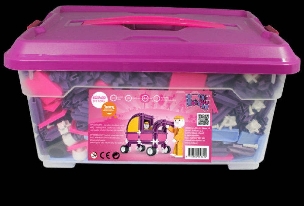 Stavebnice SEVA PRO DÍVKY 2 Jumbo SEVA pro holky 2 Jumbo obsahuje 1140 dílků a je spojení dvou stavebnic SEVA pro holky 1 a 2 do jednoho velkého praktického boxu.