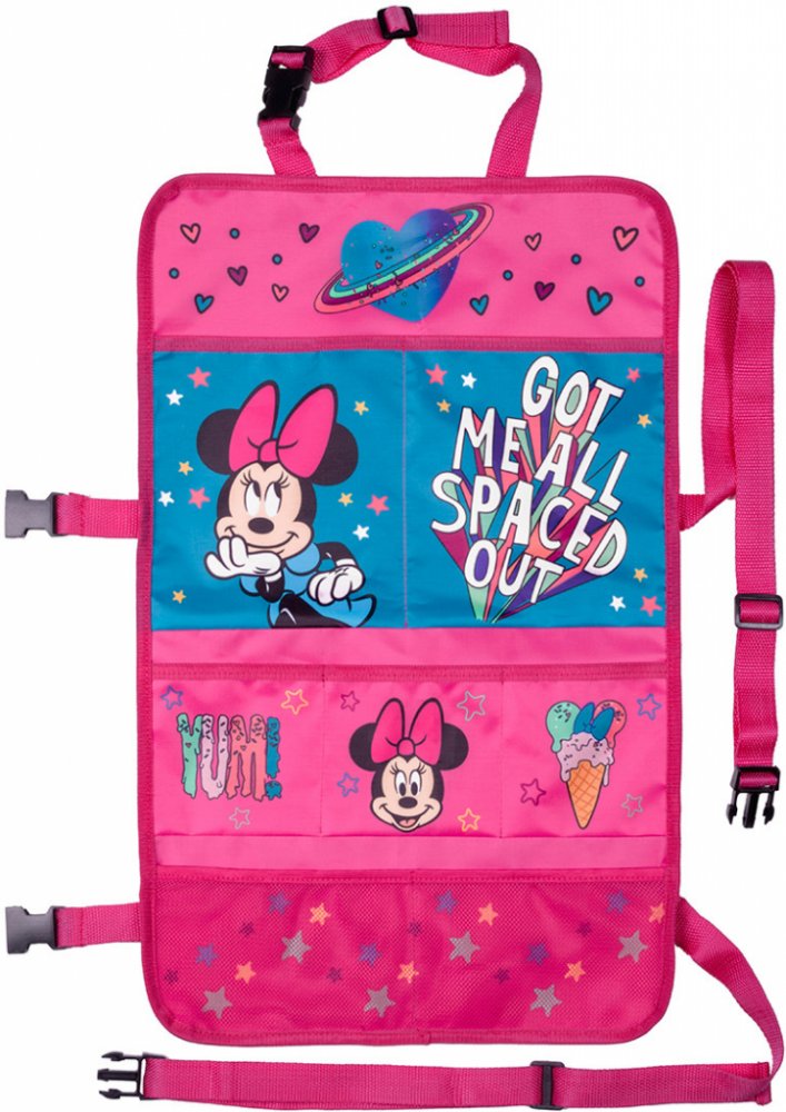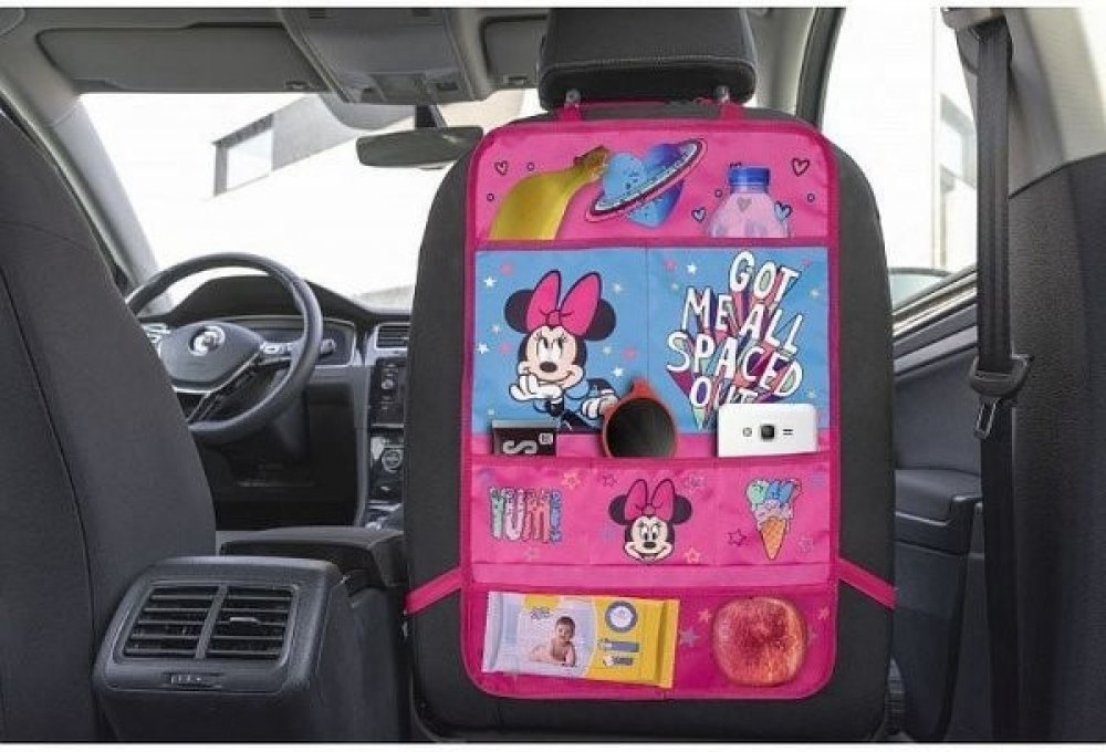 Organizér do auta na zadní stranu předního sedadla, je ideální pro ukládání hraček, knih, pitíčka a dalších drobností. Autokapsář Minnie chrání zadní část sedadla před nečistotami. Díky speciální konstrukci může být organizér Minnie umístěn i na dětském kočárku nebo golfových holích.