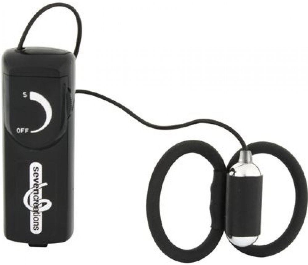 304947-/Dvojitý erekční kroužek na penis a varlata o průměru 3 a 4 cm byl vyroben z černého latexu a svými vlstnostmi se podobá pružině. Kroužek je opatřen vibračním tělískem s plynule regulovatelnými vibracemi,které se zasune do schránky dle obr. a které při souloži stimuluje partnerku. Pokud se tělísko nepoužije, slouží kroužek jako klasický erekční. *Erekční vibrační latexový kroužek + ovladač ...