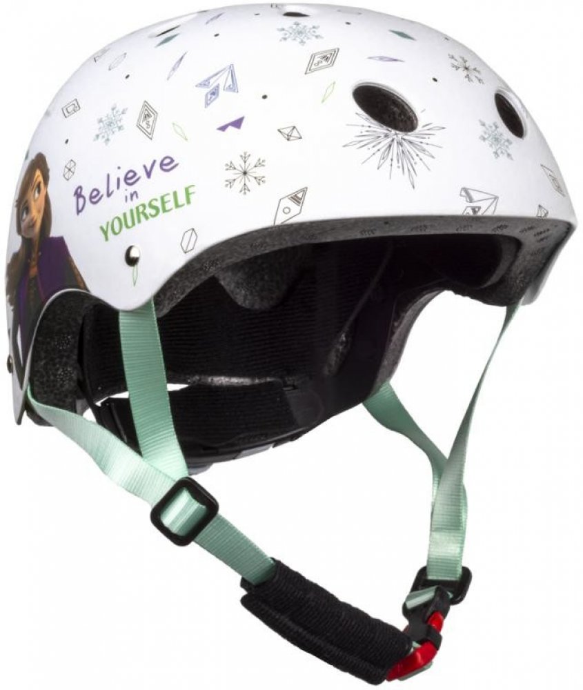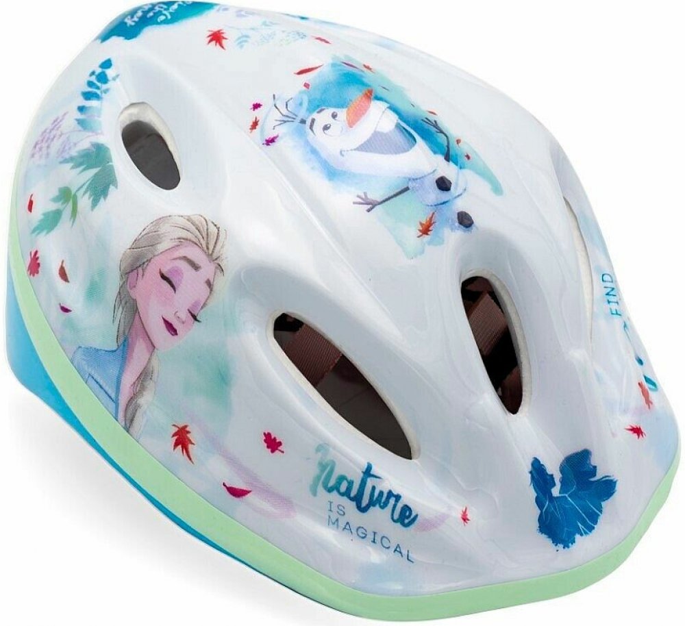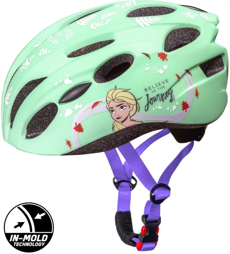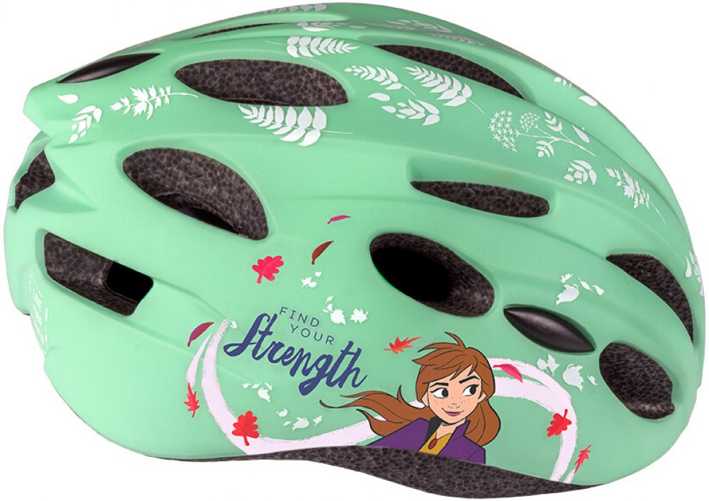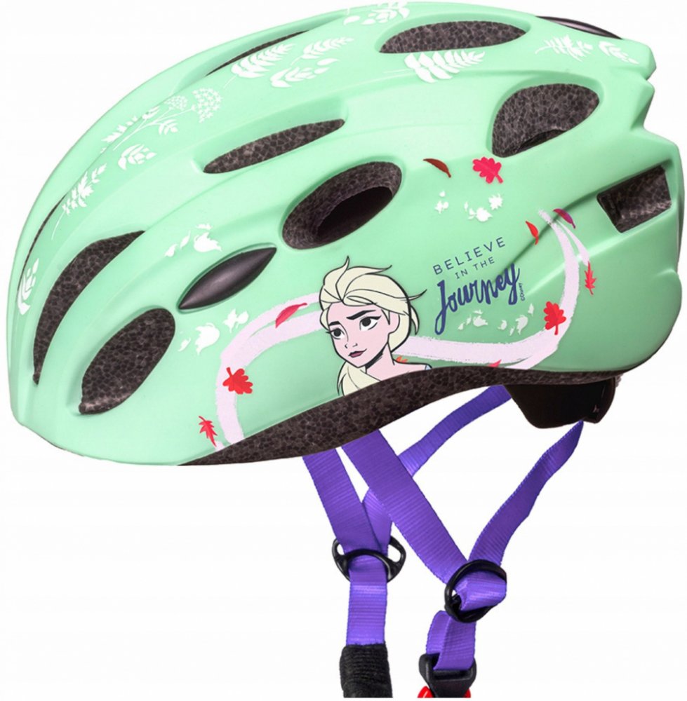 Kvalitní a bezpečná cyklistická helma pro všechny malé fanoušky pohádky Ledové království 2. Atraktivní zelené provedení s motivem oblíbených postav zaujme na první pohled a zároveň poskytne maximální ochranu při jízdě.