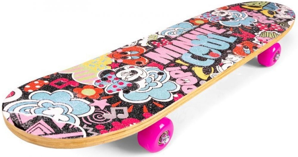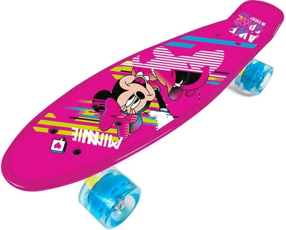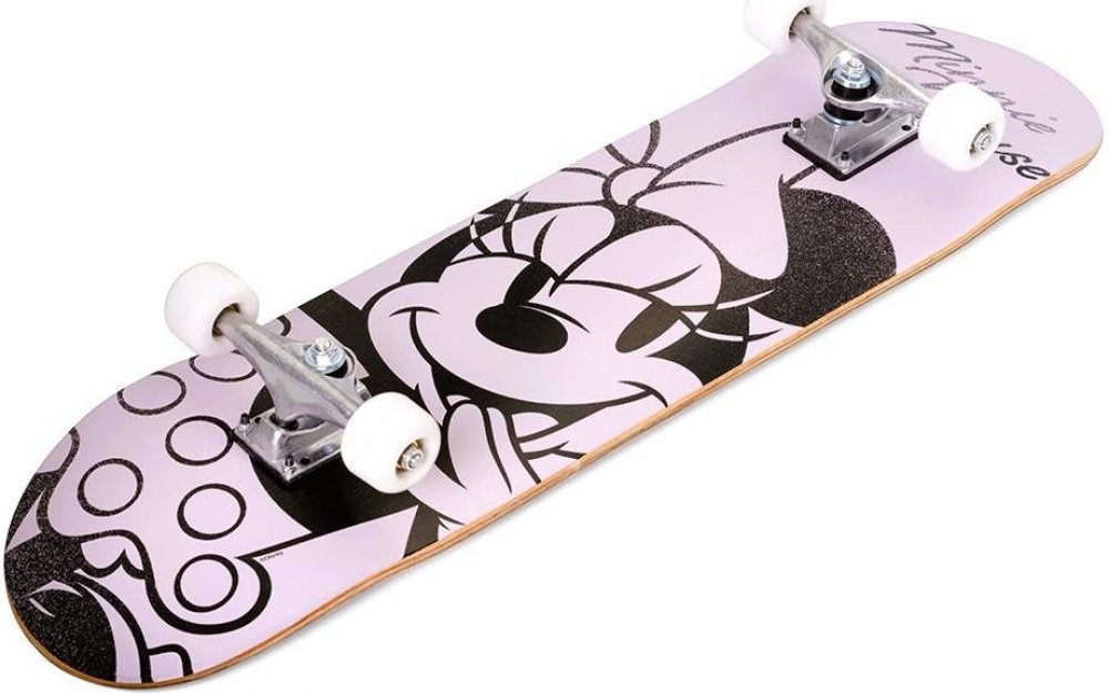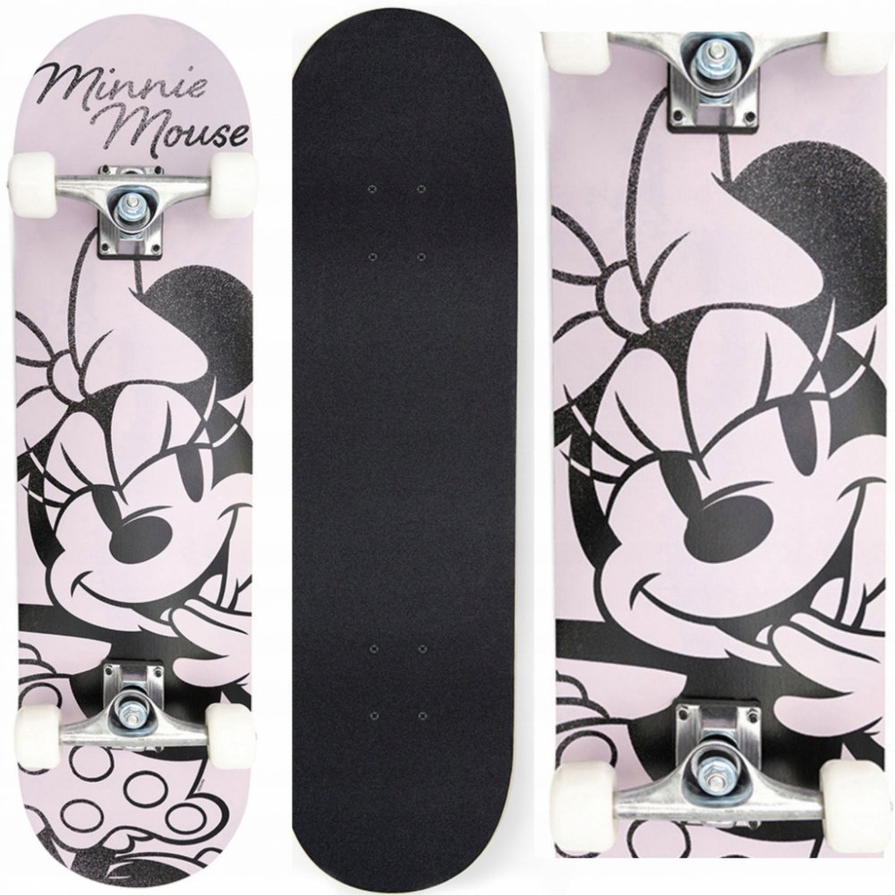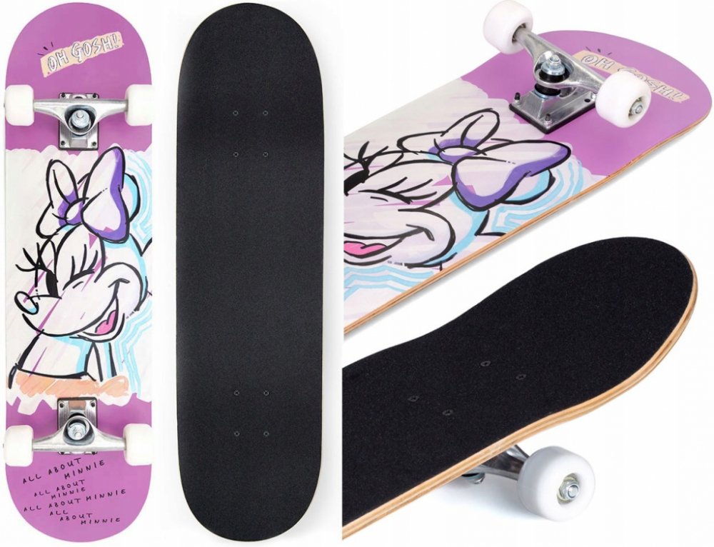 Skateboard Disney MINNIE MOUSE. Určen pro všechny začínající i pokročilé skateboardisty. Je ideální pro rekreační jízdu ve městě nebo ve skateparcích. Tento skateboard je vybaven kvalitními ložisky ABEC7 a kolečky o rozměrech 50 × 36 mm, které zaručují bezpečnou a pohodlnou jízdu. Deska je vyrobena z javorového dřeva. Horní strana desky je opatřena protiskluzovým gripem, který zabraňuje sklouznutí. Produkt byl navržen, vyroben a uveden na trh v souladu s požadavky EN 13613: 2009, třída B.