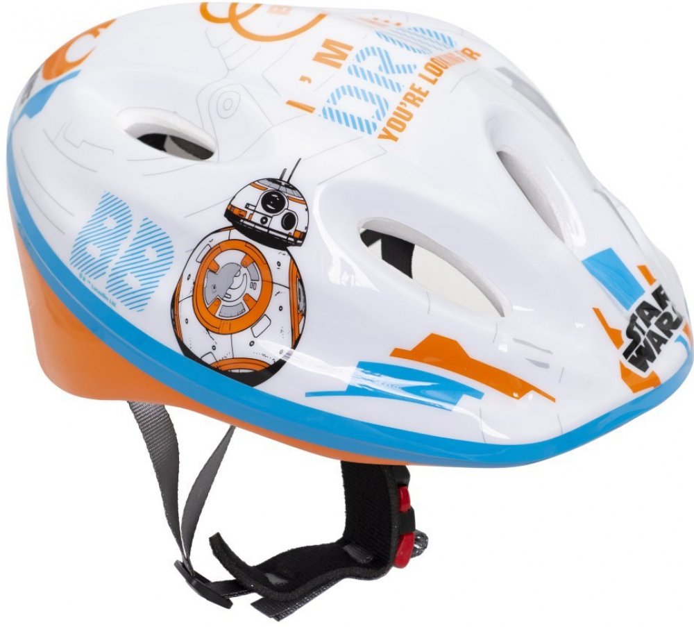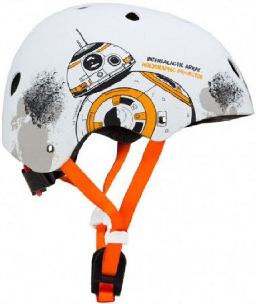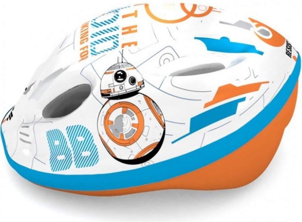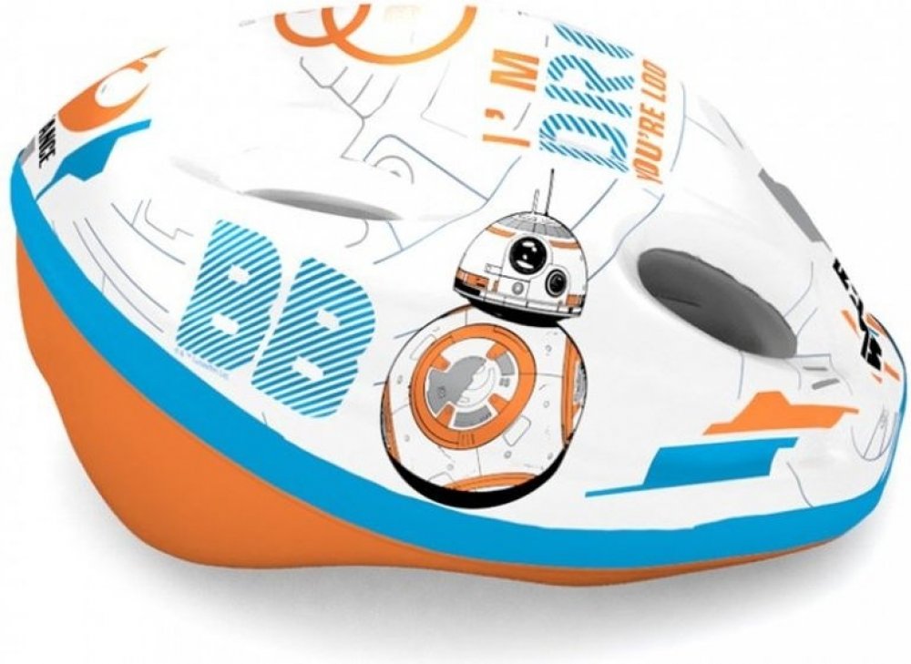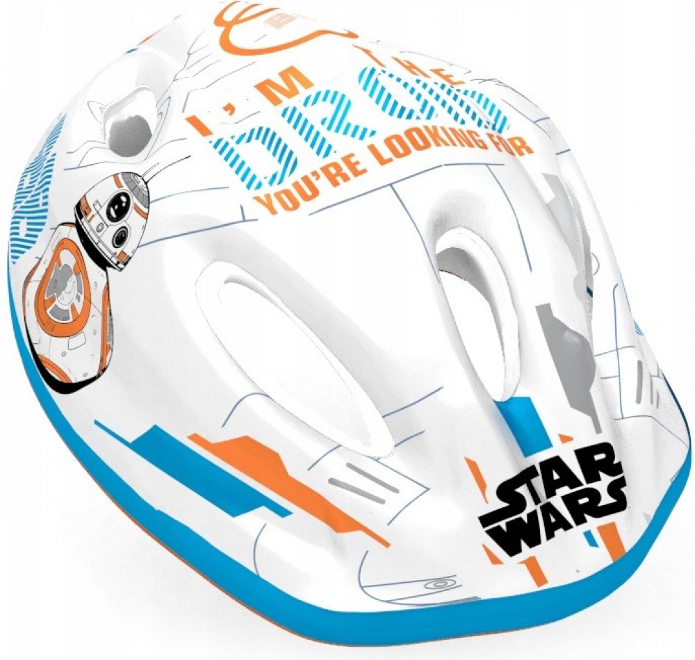 Bezpečnostní helma pro děti. Přilba splňuje nejpřísnější bezpečnostní standardy, je jedním z nezbytných doplňků nutných pro jízdu Vašeho dítěte na dětském kole nebo kolečkových bruslí. Je prokázáno, že bezpečnostní přilby mnohonásobně snižují riziko těžkého poranění oblasti hlavy při pádu, což je hlavní důvod proč by bezpečnostní přilba Vašemu dítěti neměla chybět. Designově velice pěkně ztvárněná přilba má na svém povrchu motiv Star Wars.