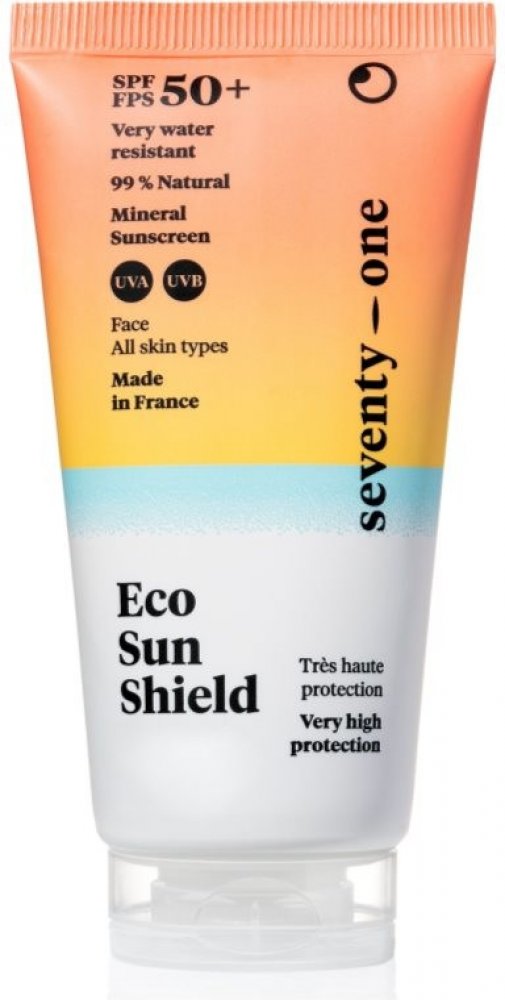 SeventyOne Eco Sun Shield SPF50+ Sun Cream Very High Protection je voděodolný opalovací krém na obličej. Chrání pokožku obličeje před UVA a UVB zářením. Lze ho aplikovat i na mokrou pokožku.